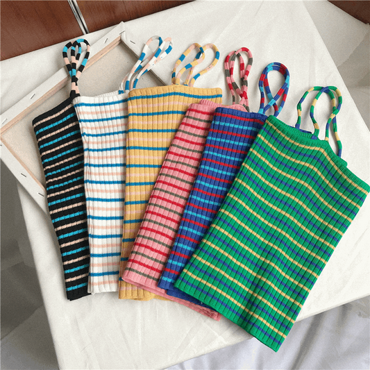 90s Stripe Knit Spaghetti Strap Top (6 Colours)