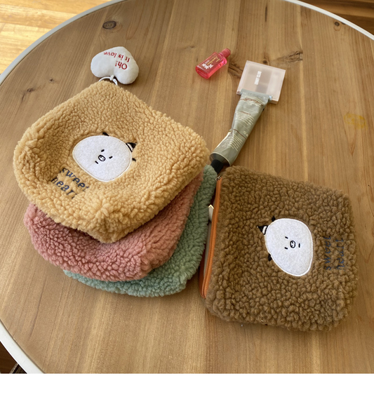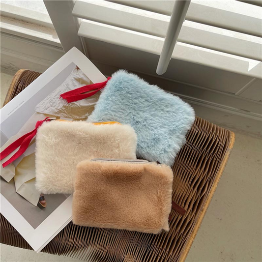Funny Bunny Teddy Fur Zipper Pouch (3 Colours)