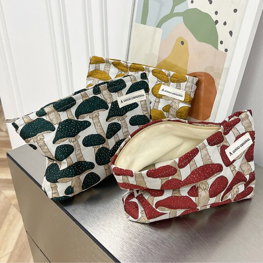Mushroom Pattern Zipper Pouch (3 Colours)