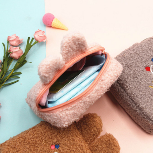 Plush Teddy Bear Face Zipper Pouch (2 Designs)