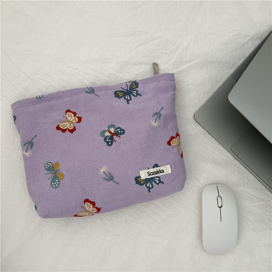 Textured Butterfly Pattern Zipper Pouch (3 Colours)