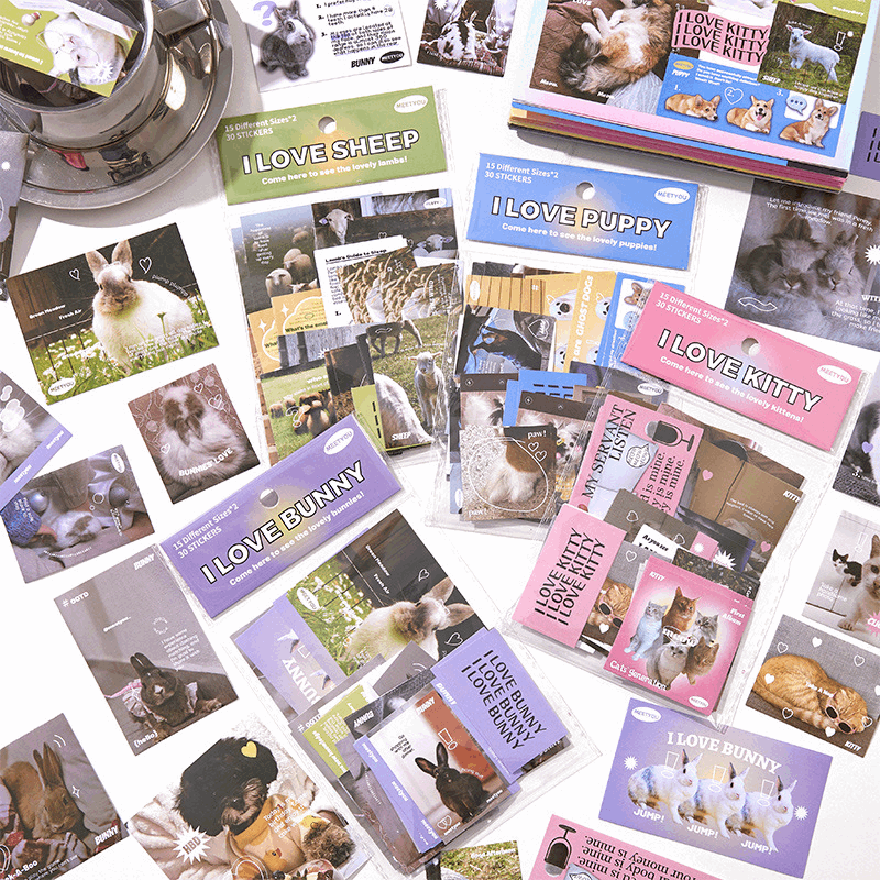 Make any project extra paw-some with these Animal Love Sticker sets! Get 30 y2k-style collage stickers: cats, dogs, bunnies, and sheep so you can strut your stuff - no matter what kind of pet parent you are. Fur-ever fun!