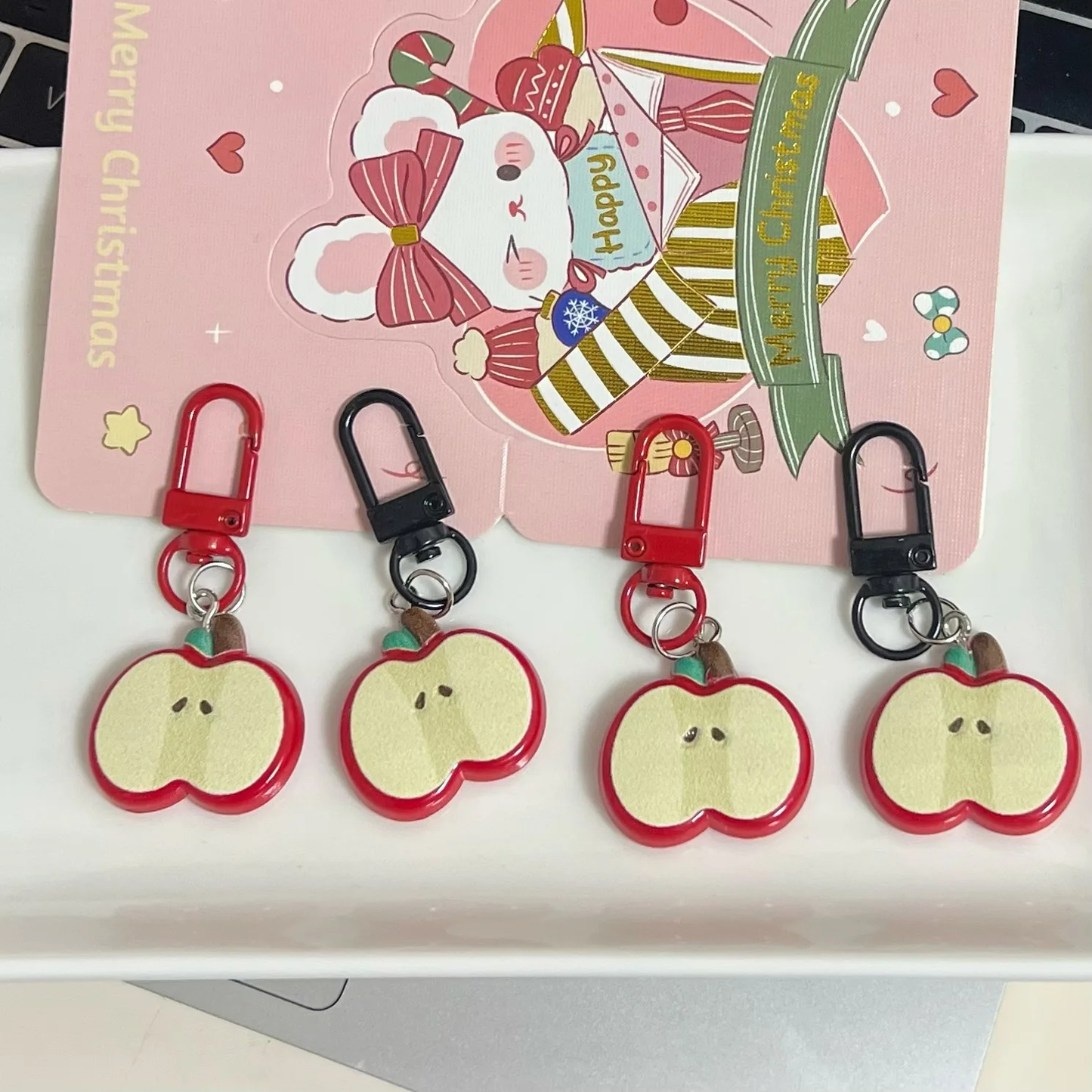 Spice up your everyday accessories with this adorable apple-shaped charm! Choose between a bold red or sleek black clip, or go all out and get both to add a pop of sweetness to your style. Perfect for decorating your bags, attaching to your keychain, or clipping onto a zipper pull.
