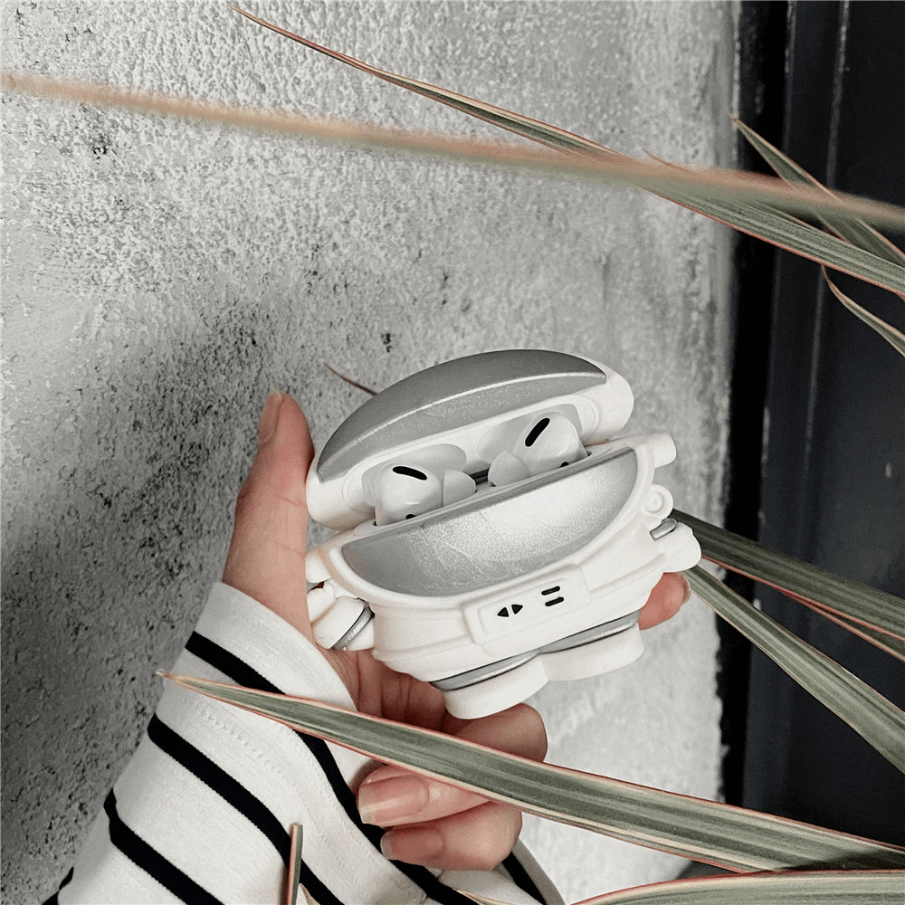 Cute soft protective cover for Airpod cases (Airpod charger case not included!) with clasp loop shaped like an astronaut! Available for Airpods 1/2 and Airpods Pro cases.