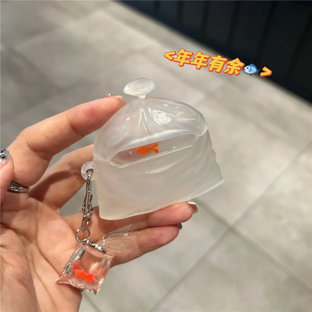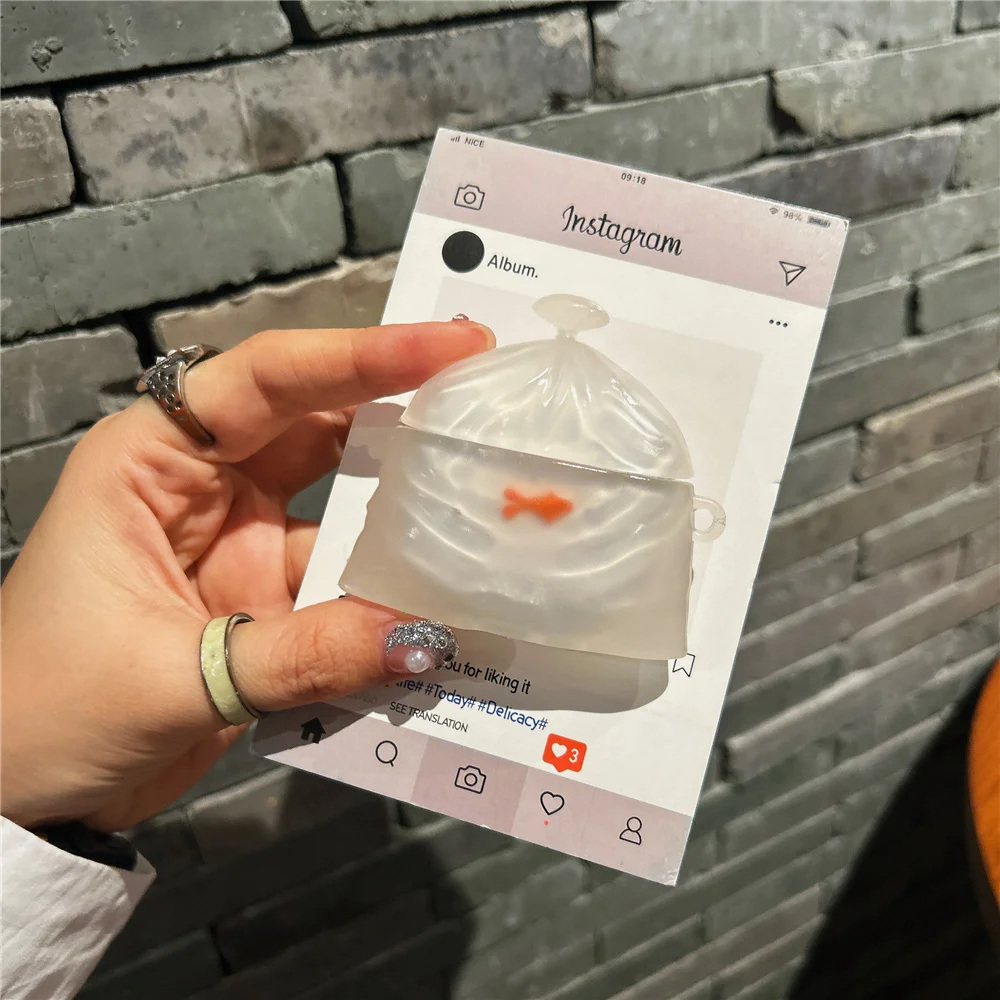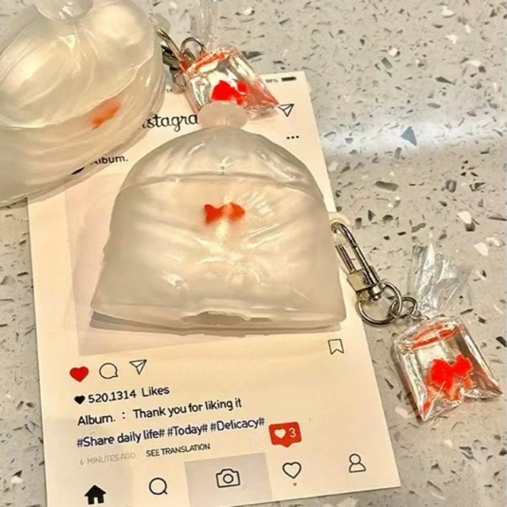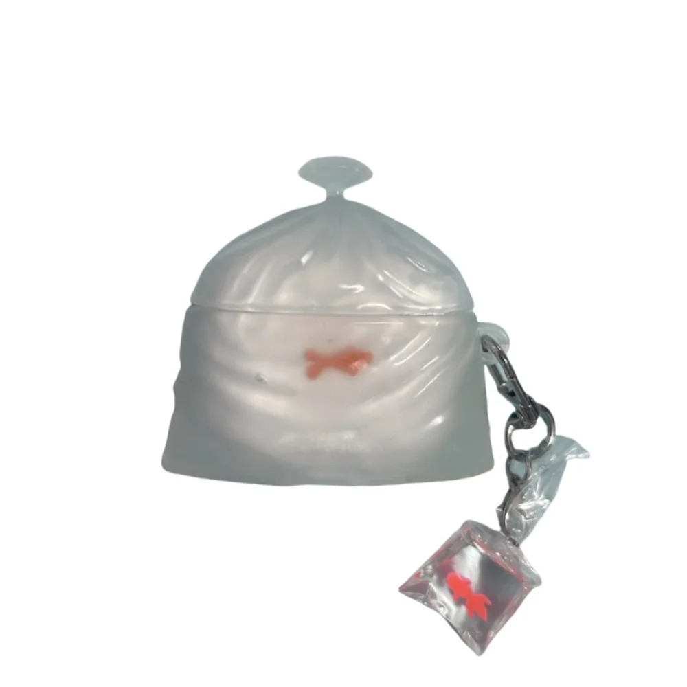 Make a splash with your AirPods! Protect your earphones in style with this adorable charger case cover. It's shaped like a plastic bag holding a tiny orange goldfish - choose between a plain baggie or one with a cute matching goldfish charm! Plus, there's a loop to easily attach a clip-on. This case is not only cute, it's also functional and fun!