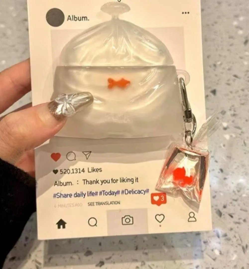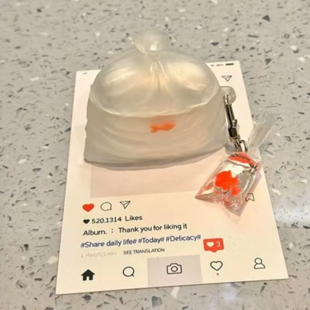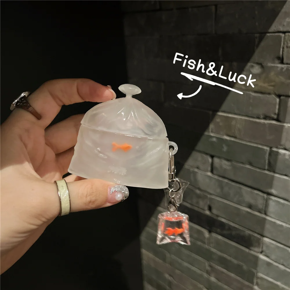 Make a splash with your AirPods! Protect your earphones in style with this adorable charger case cover. It's shaped like a plastic bag holding a tiny orange goldfish - choose between a plain baggie or one with a cute matching goldfish charm! Plus, there's a loop to easily attach a clip-on. This case is not only cute, it's also functional and fun!