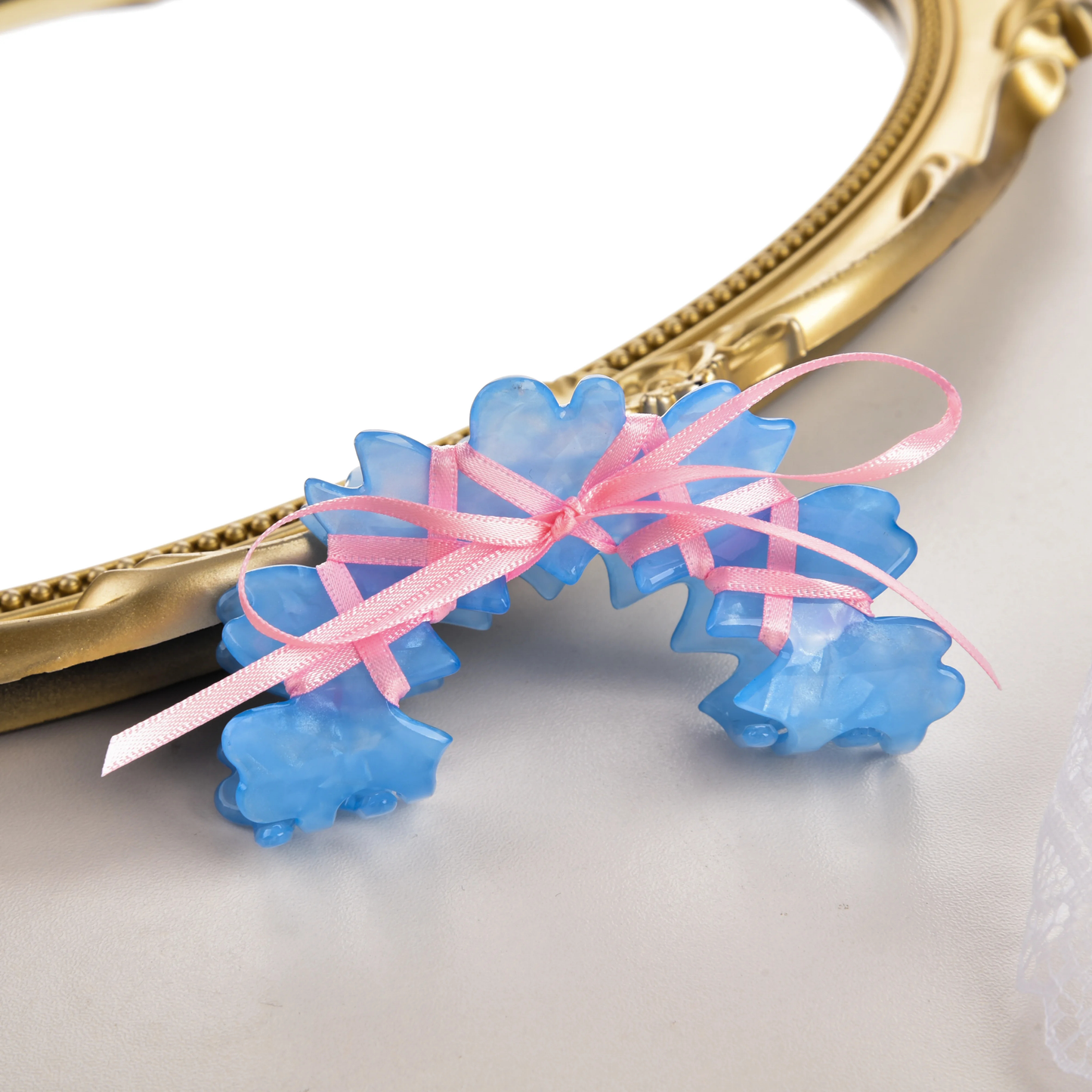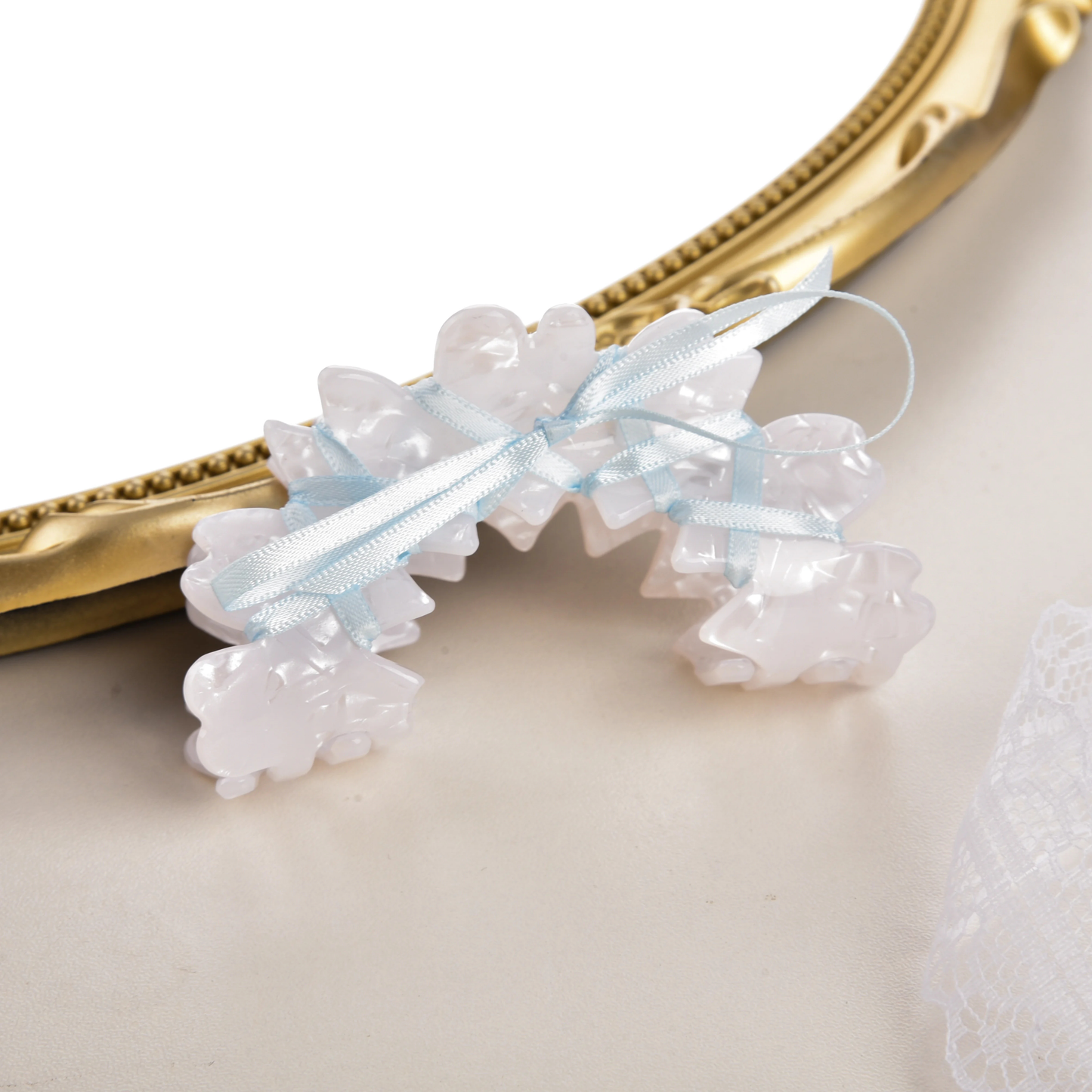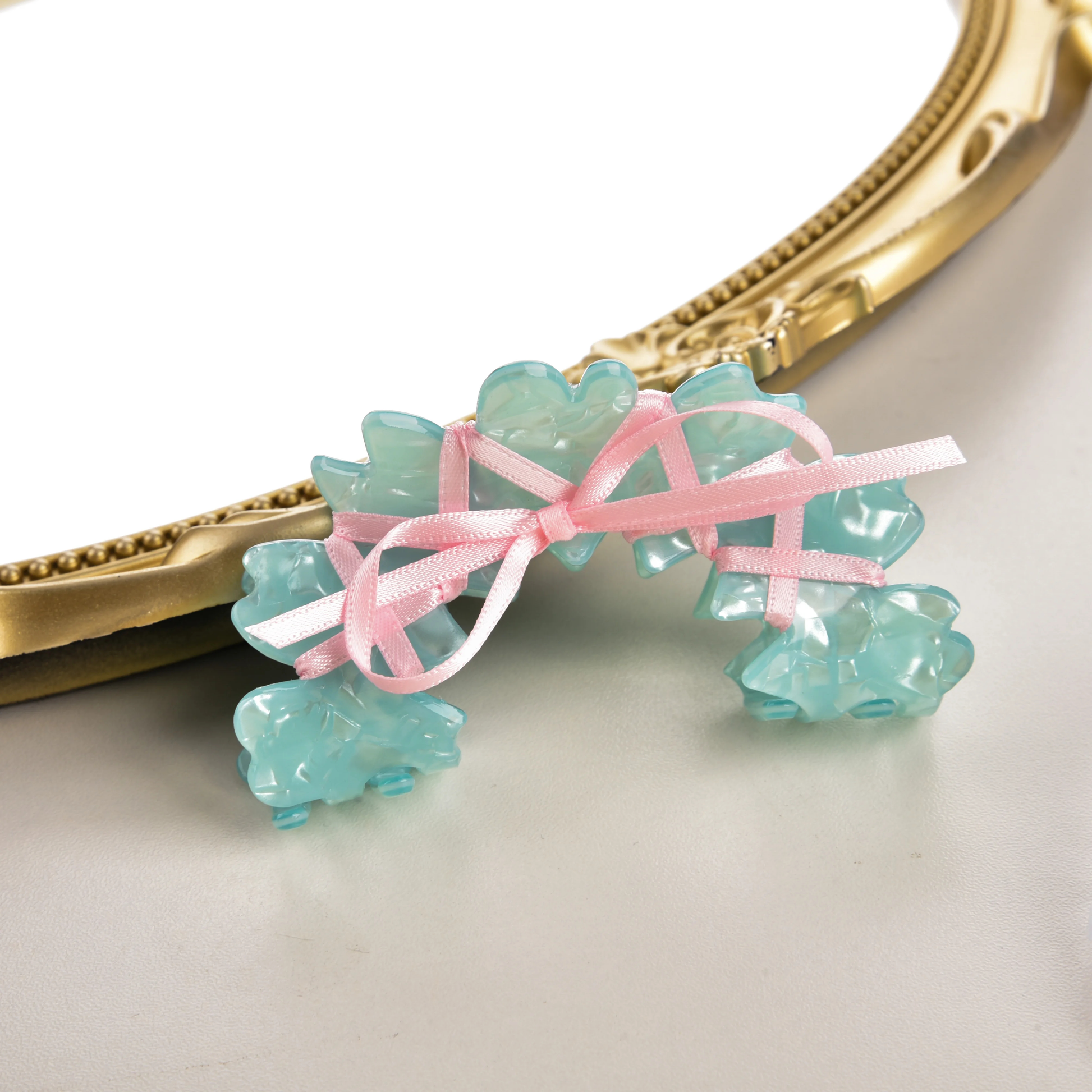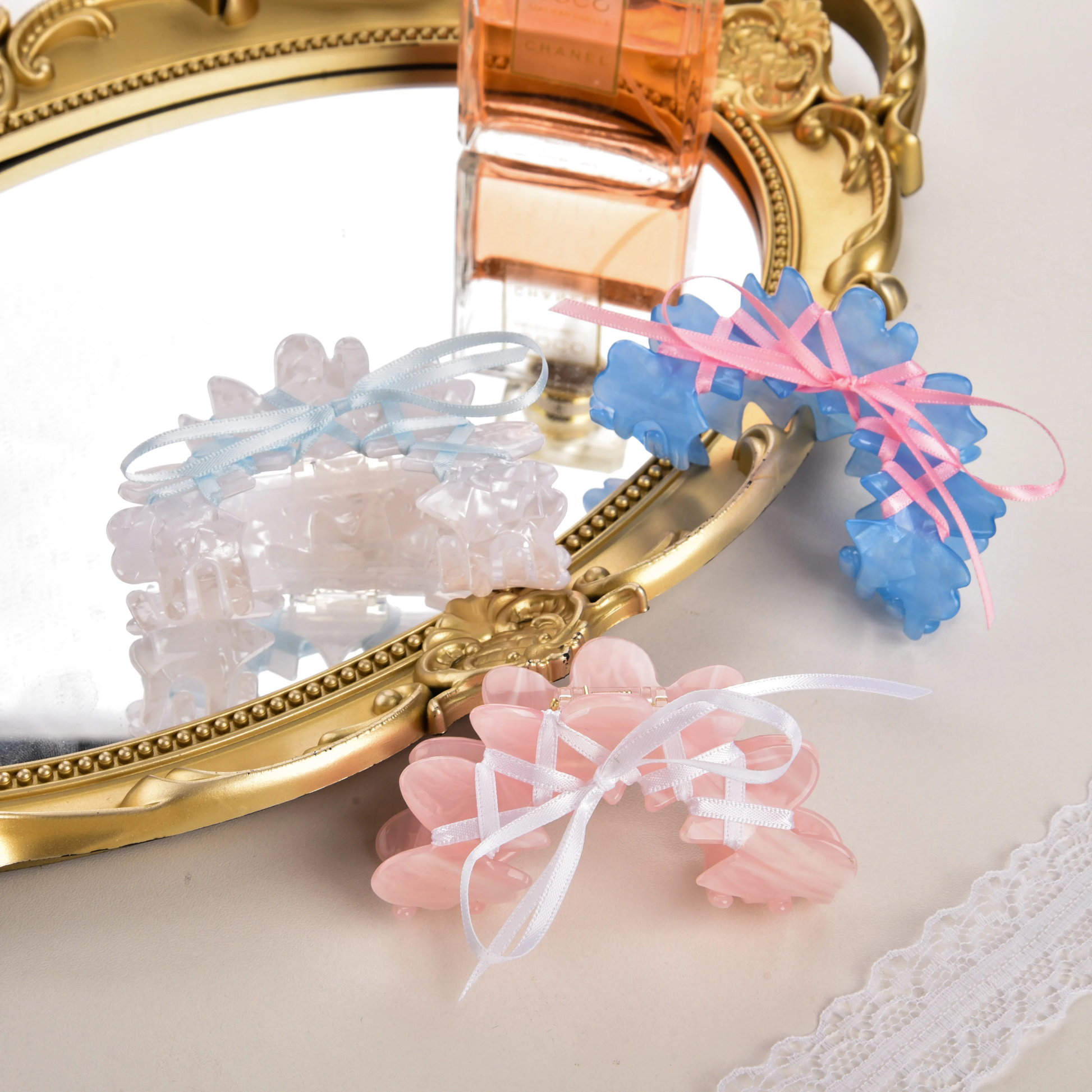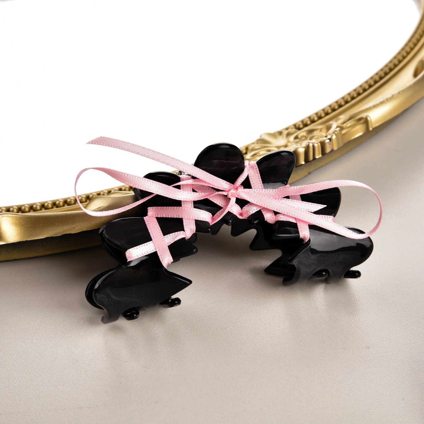 Say goodbye to bad hair days with our Ballet Style Ribbon Acrylic Hair Claw Clip! The looped coquette style ribbon bow detailing adds an elegant touch to any hairstyle, while the wavy edges help keep your hair in place all day long. Available in 5 different colours or as a complete set for a discounted price, this hair clip is the perfect accessory for your balletcore look. Don't let your hair hold you back- let our hair claw do the work for you!