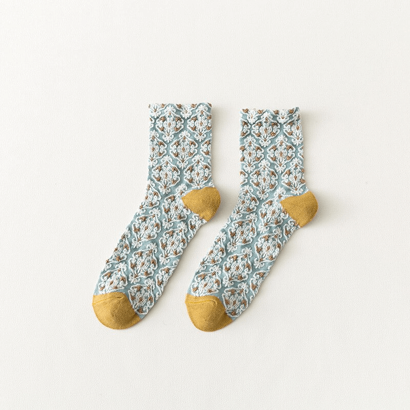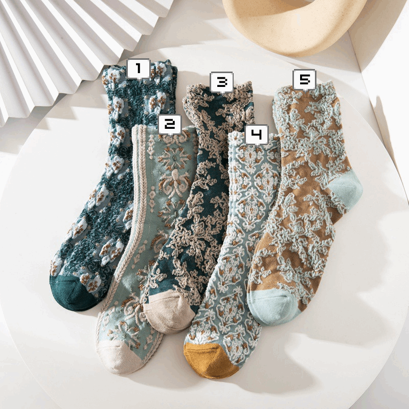 Baroque Wallpaper Pattern Textured Crew Socks (5 Colours)