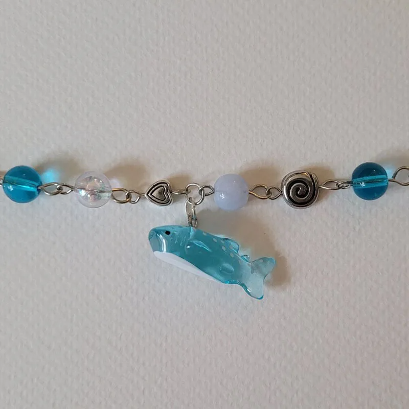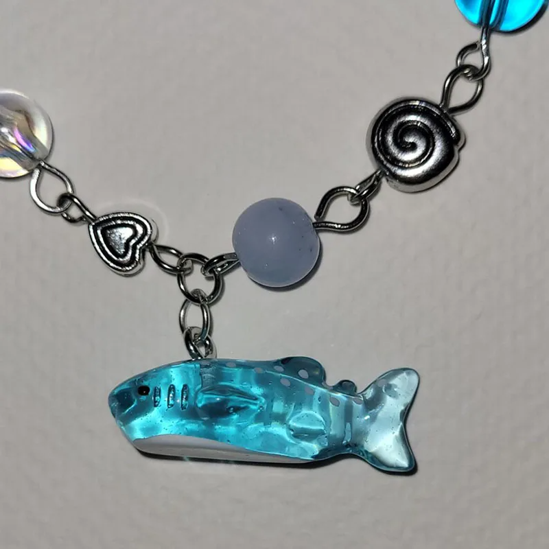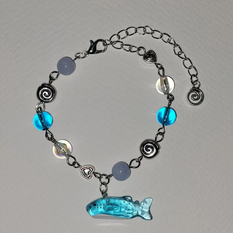 This adorable Blue Beaded Whale Shark Bracelet is sure to make a splash! Featuring blue and silver beads, as well as a shale shark charm, this bracelet is a fin-tastic addition to any outfit. Show off your love for marine life and add some playful style to your look with this unique piece.