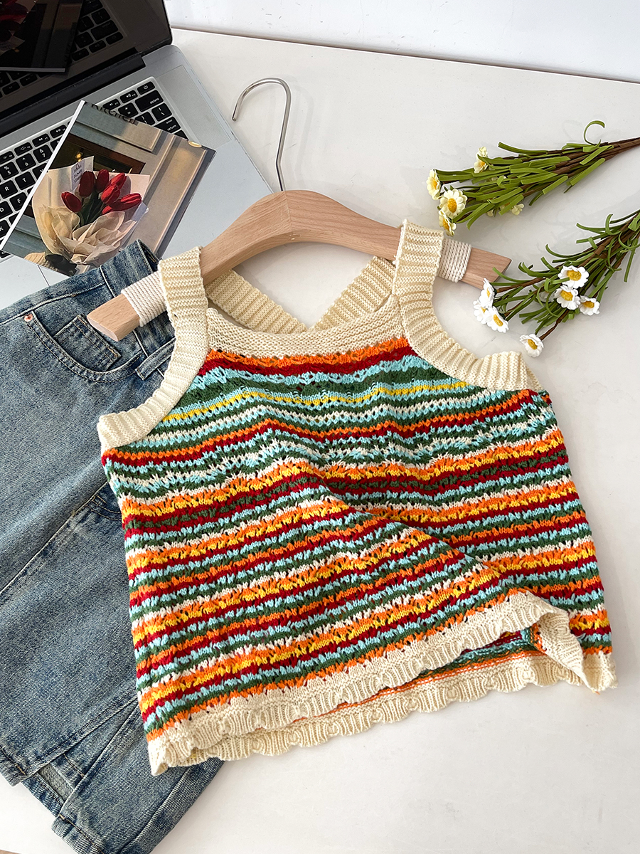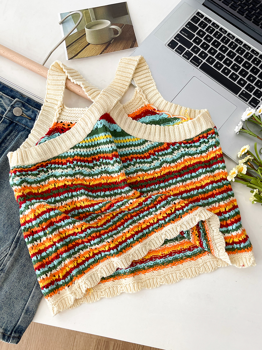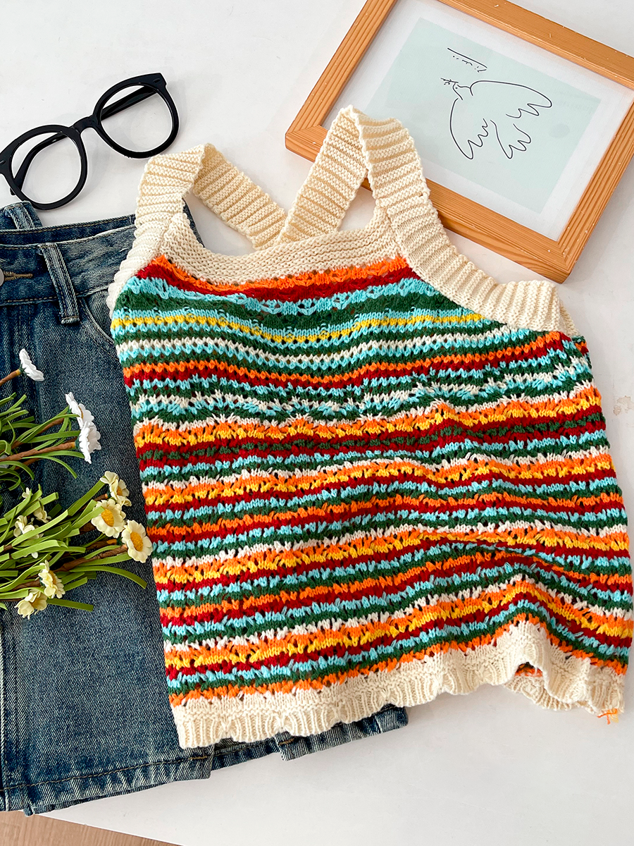 Look gorgeous in the Brigitte Stripe Knitted Top! This '70s-inspired beauty boasts multicolor stripes & scalloped edging, making it the perfect pick for any retro fashionista! Rock your style with Brigitte and be the belle of the ball!