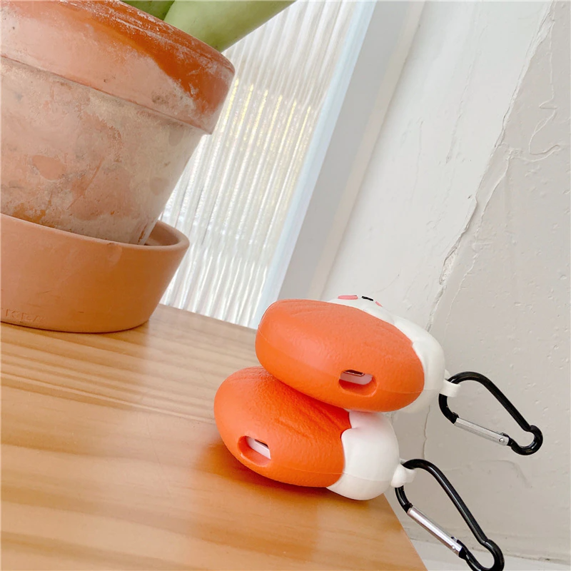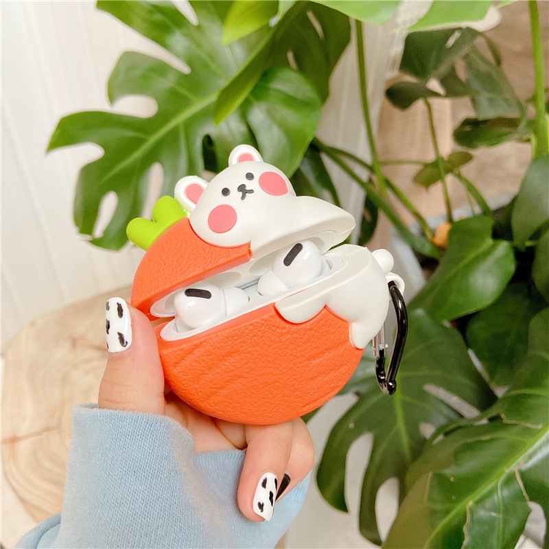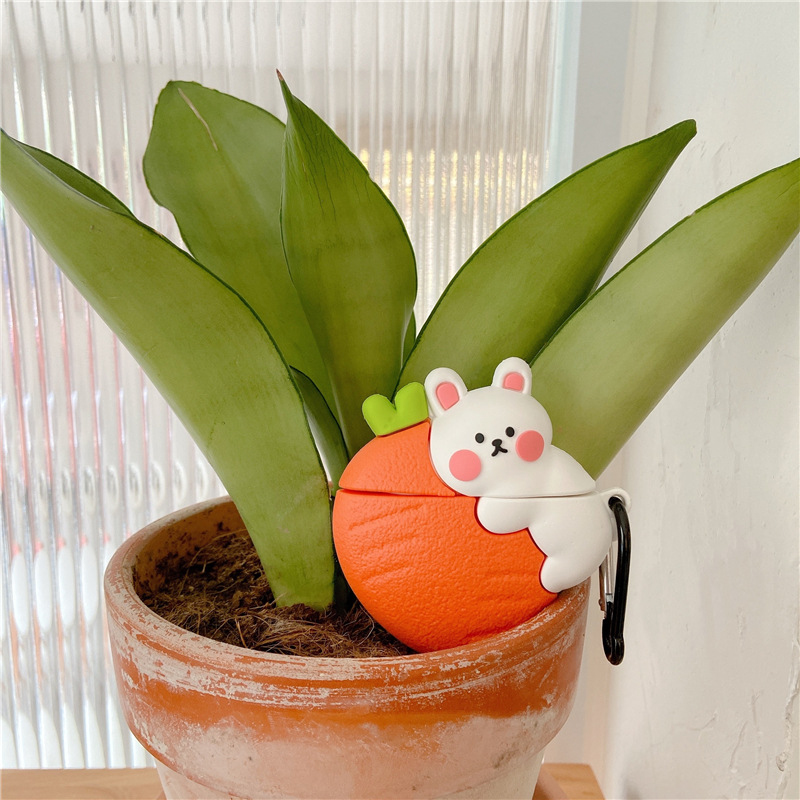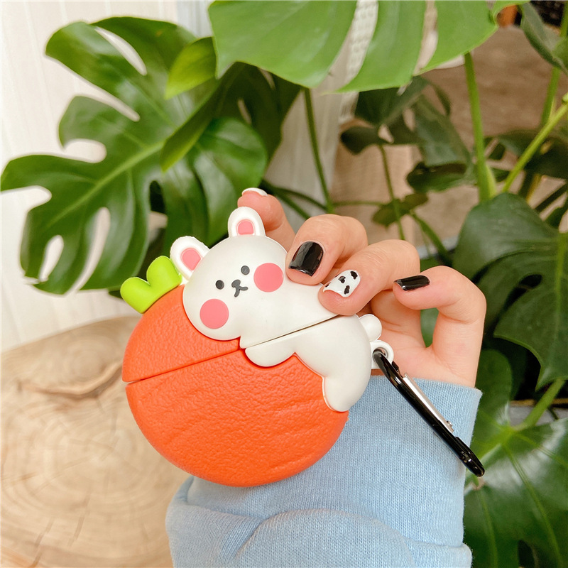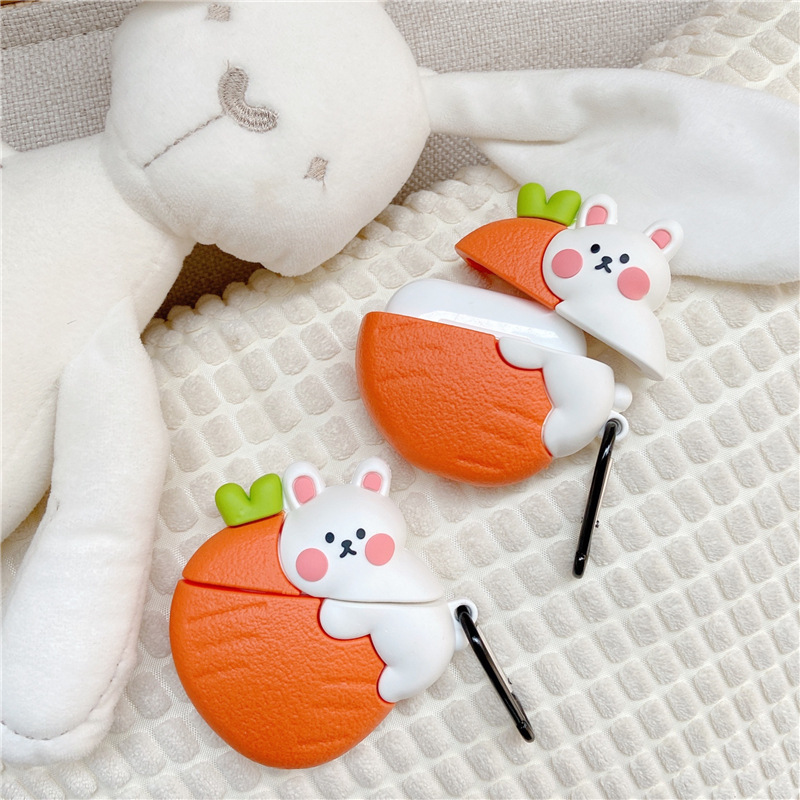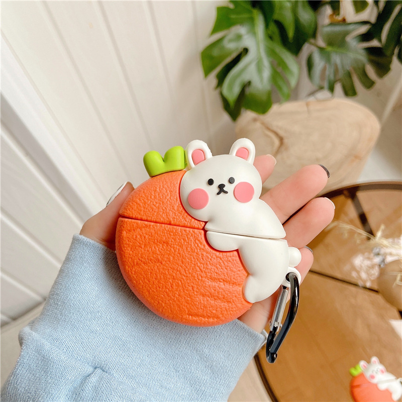 Cute soft protective cover for Airpod cases (Airpod charger case not included!) with clip in carrot + bunny rabbit design! Will fit Airpods 1/2 and Airpods pro cases.