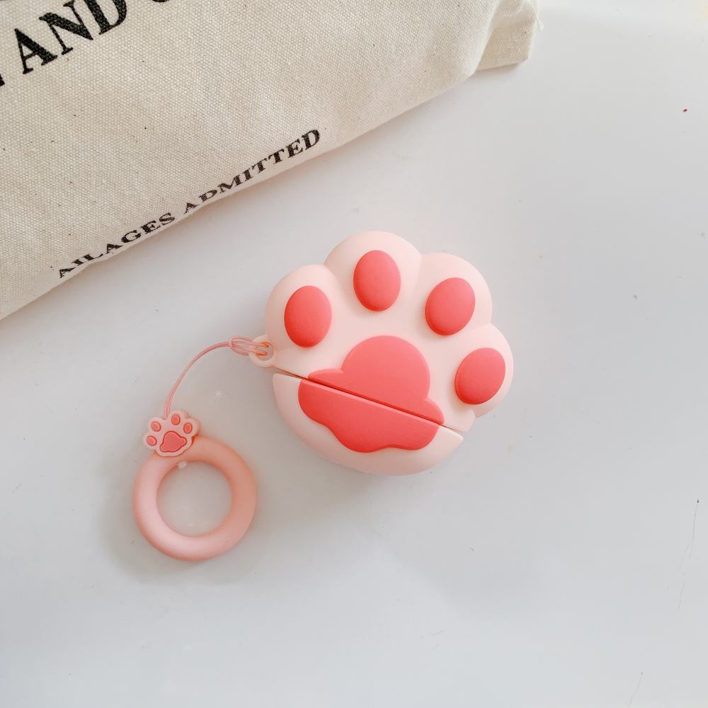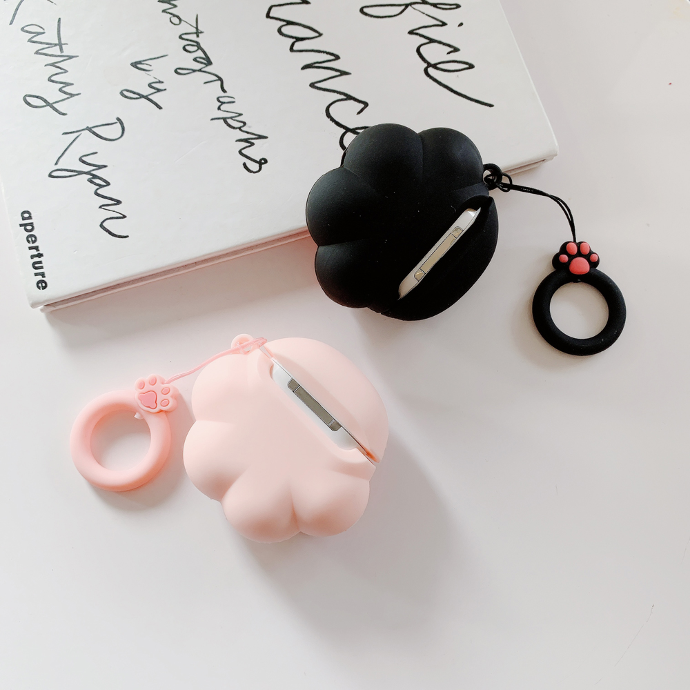 Cute soft protective cover for Airpod 1/2 cases (Airpod charger case not included!) shaped like a cat paw with ring shaped strap, available in three different colours!