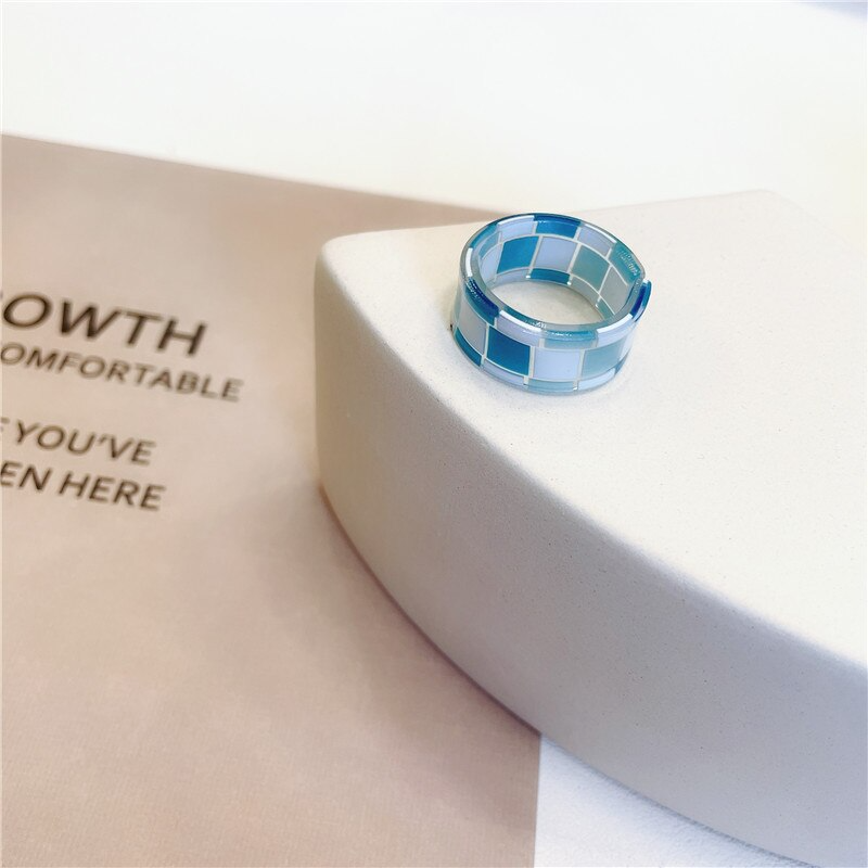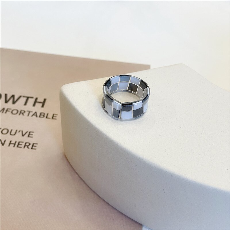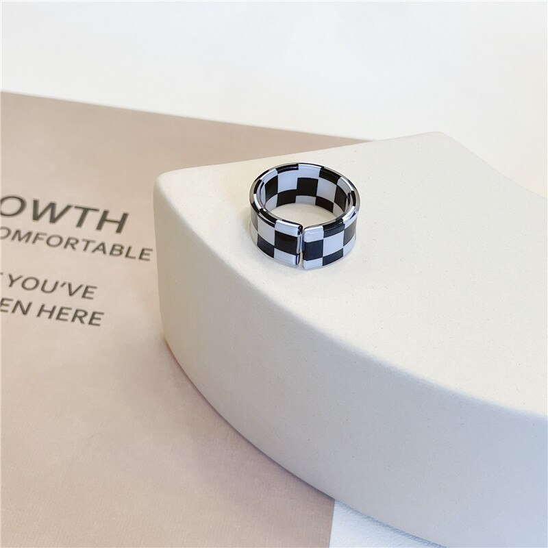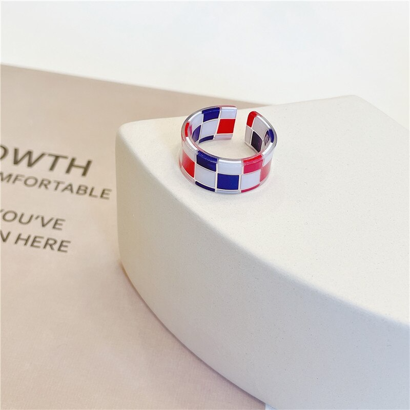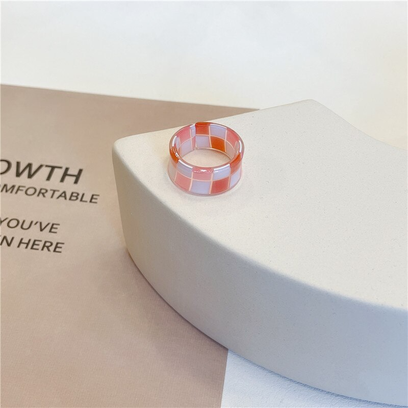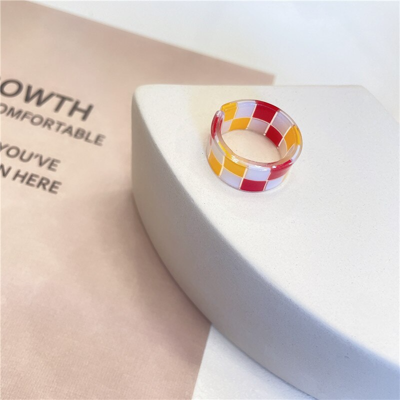 Put a fun and playful spin on your style with this checkerboard pattern ring, available in 9 vibrant and bold colours. Add some y2k vibes to your look with this colorful statement piece that will surely turn heads. Made from durable acrylic, this ring is perfect for everyday wear and will easily match with any outfit.