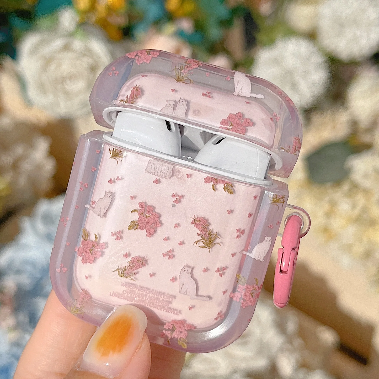 Elevate your AirPods game with our Cherry Blossom Cats case cover! Designed for all the feline lovers out there, this pink cover features an adorable pattern of sakura blossoms and white cats. Keep your AirPods safe and stylish while showing off your love for cats.