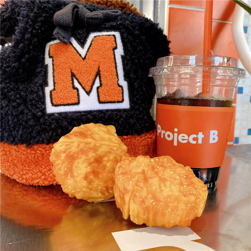 Cute clip-on protective cover for Airpods 1/2 and Airpods Pro cases (Airpod charger case not included!) with clip loop shaped like a chicken nugget!