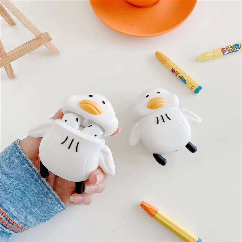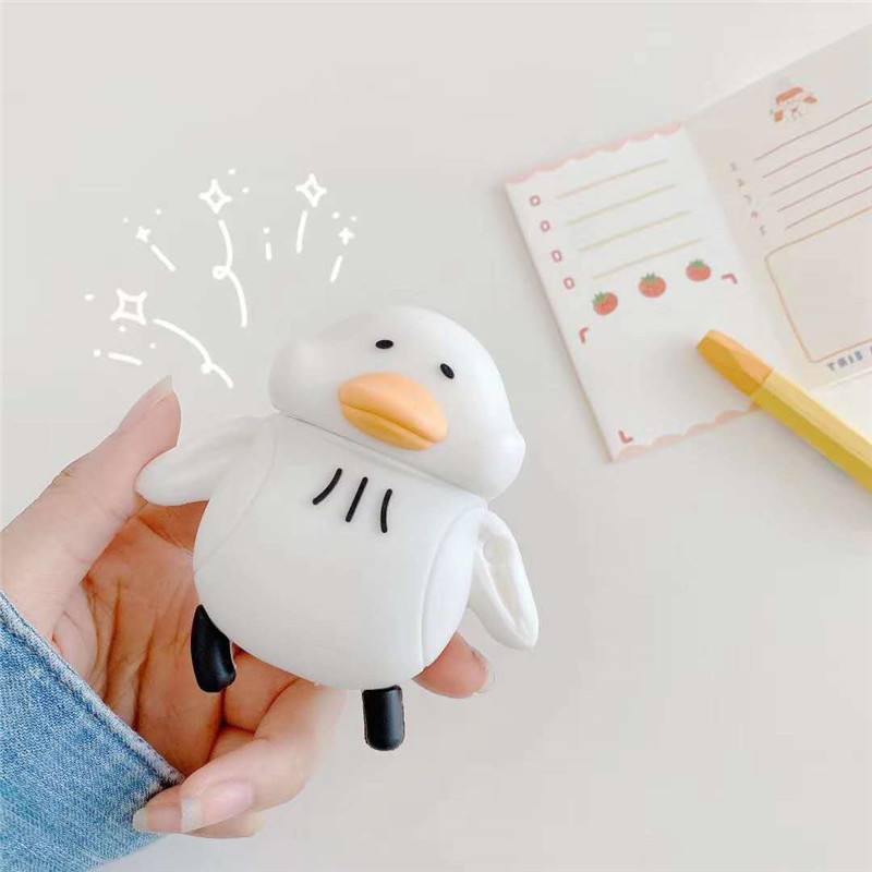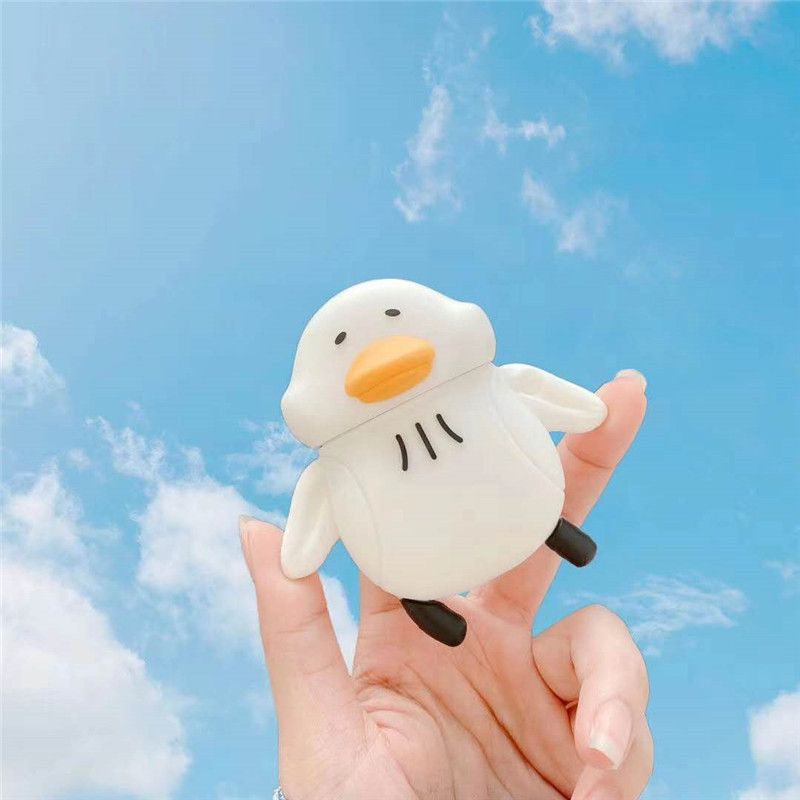 Cute soft protective cover for Airpods 1/2 and Airpods Pro cases (Airpod charger case not included!) with strap loop, shaped like a little white chubby duckling!