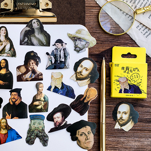 Pack of fine art stickers: 45 stickers total, 16 different designs, box is 4.4X4.4X1.1CM big.