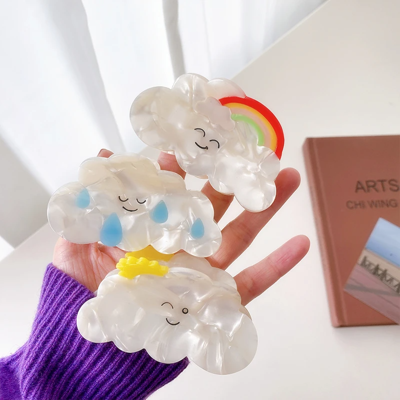 This cheerful collection of Happy Clouds Hair Claw Clips will have your hair looking as dapper as a rose-tinted sky. Perfect for adding a touch of sky-high style to any 'do, these pearlescent acrylic clips come in three enlivening shades. Get ready to rock those aqua-magic locks!