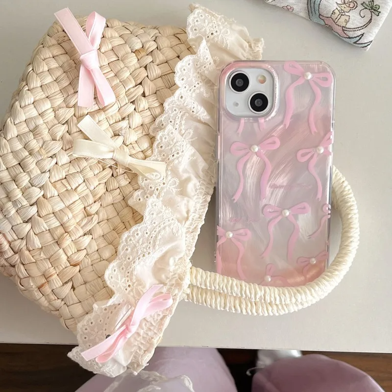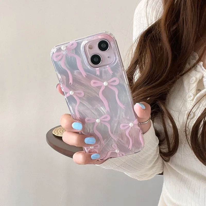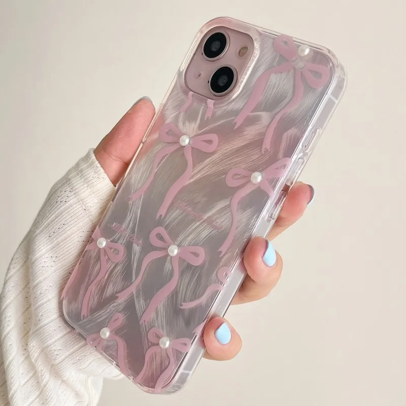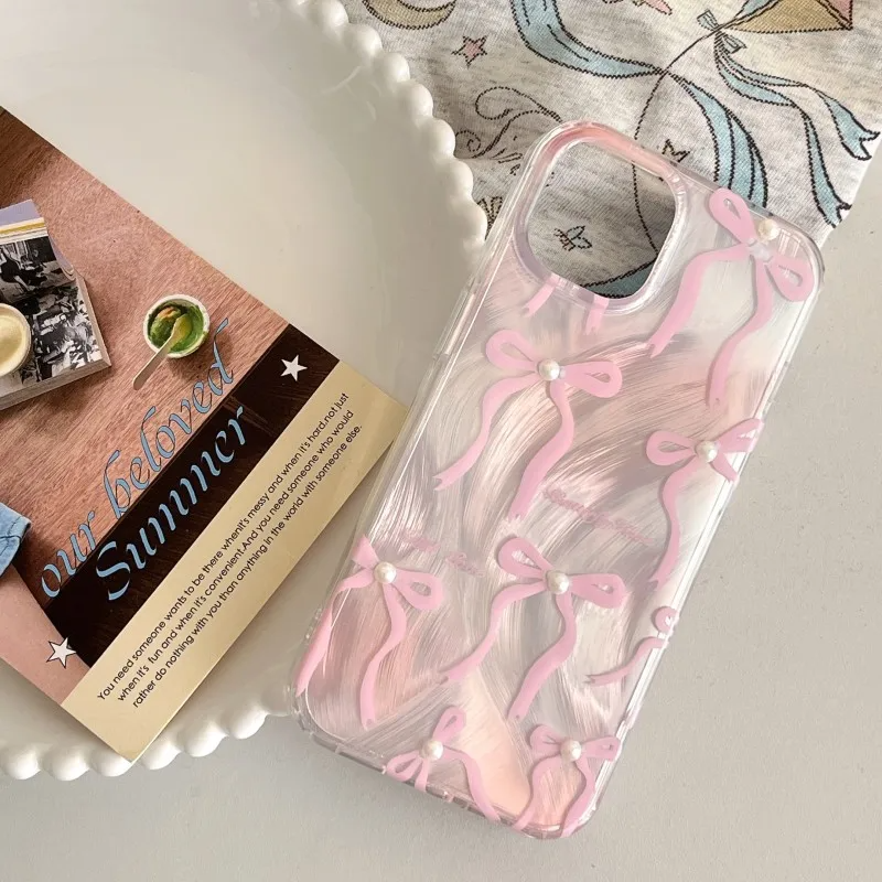 Dress up your phone, while keeping it safe and sound, with a touch of coquettish charm. This playful cover boasts an allover pattern of pretty pink bows, adorned with a faux pearl centerpiece. Your phone will look pretty in pink, protected with a touch of elegance and whimsy. You'll surely be the talk of the town with this fashionable and functional case!