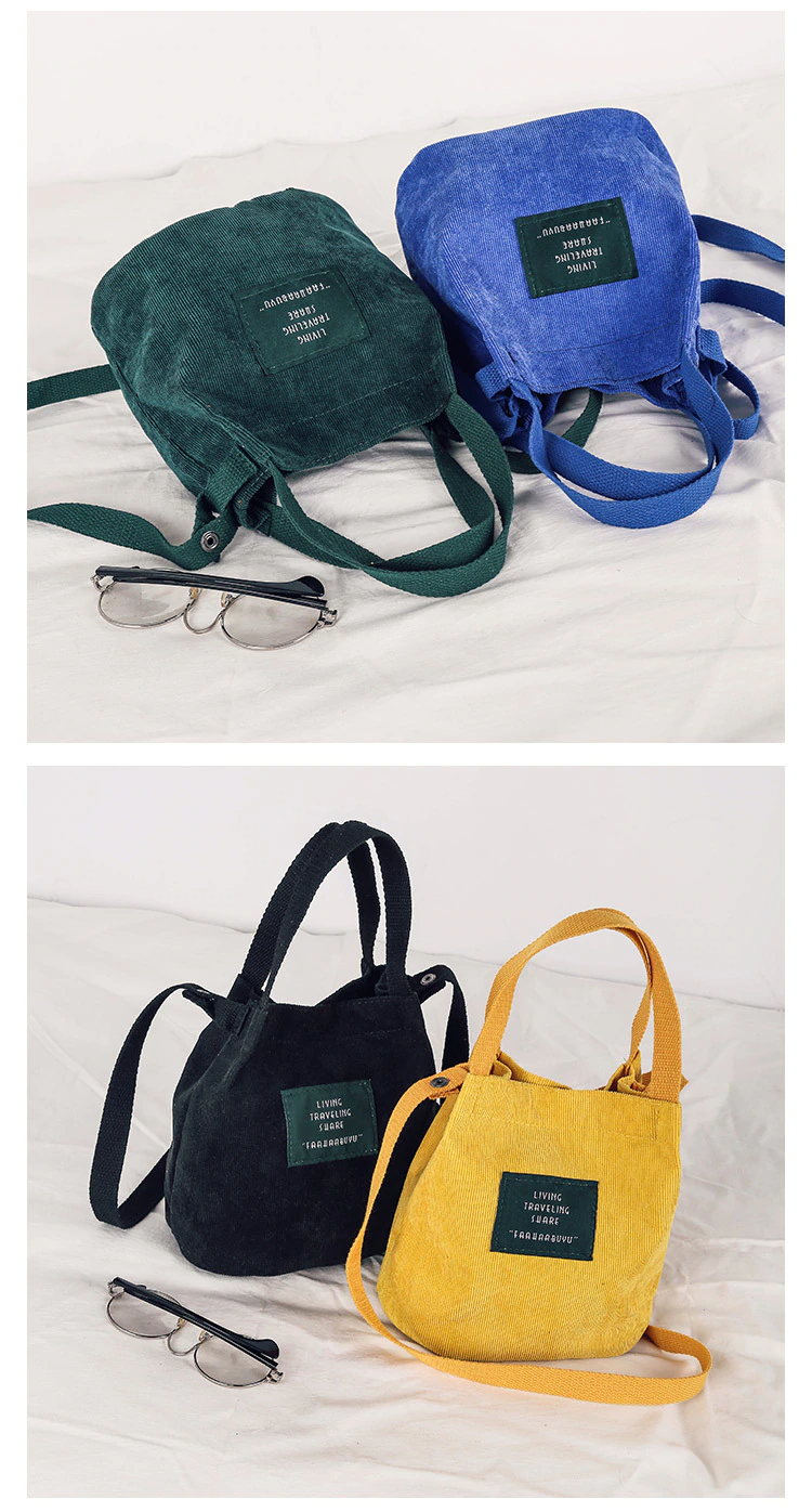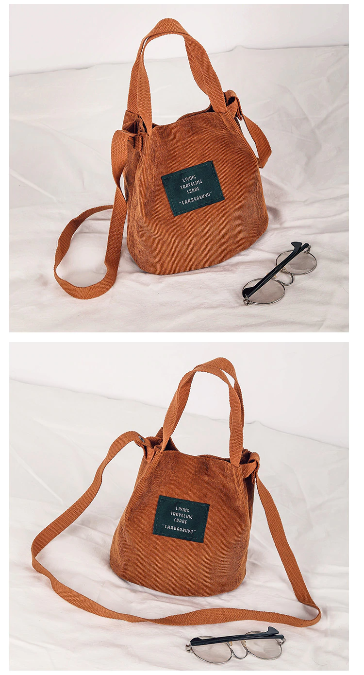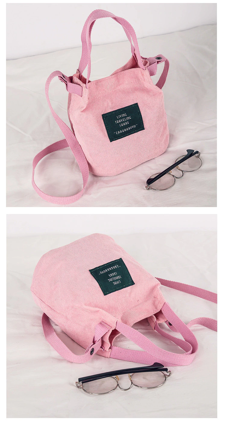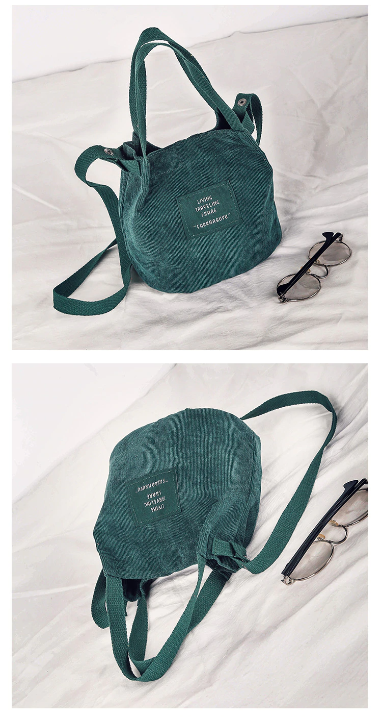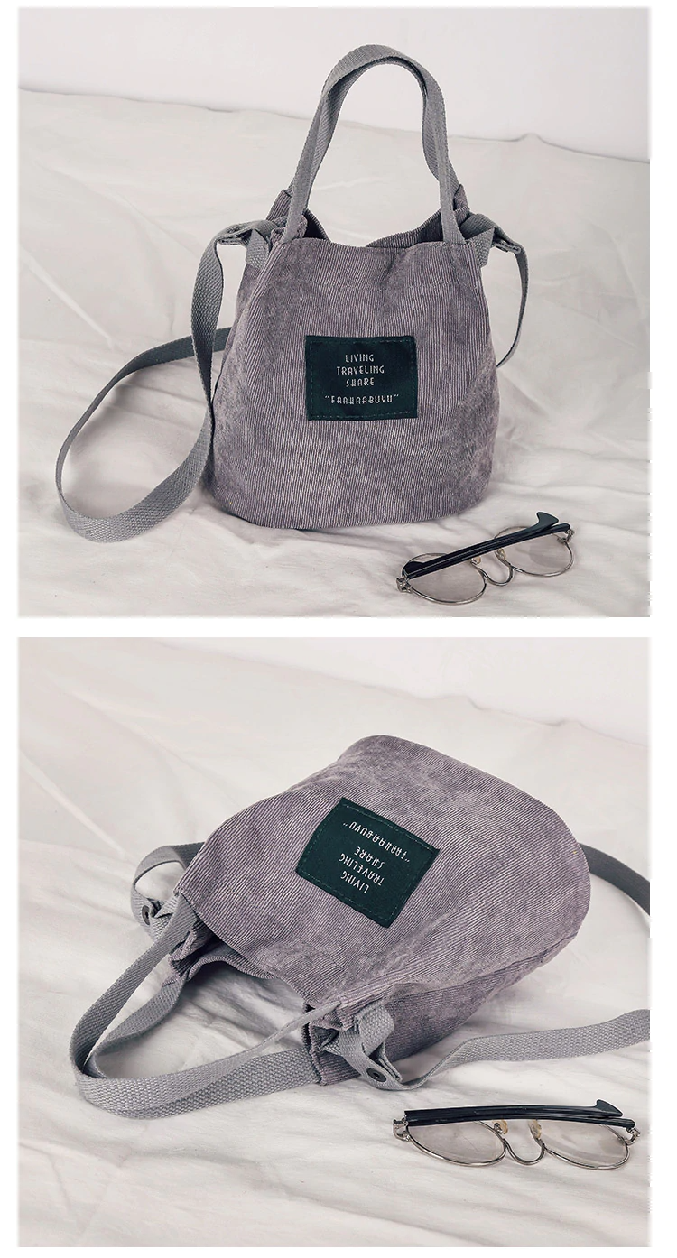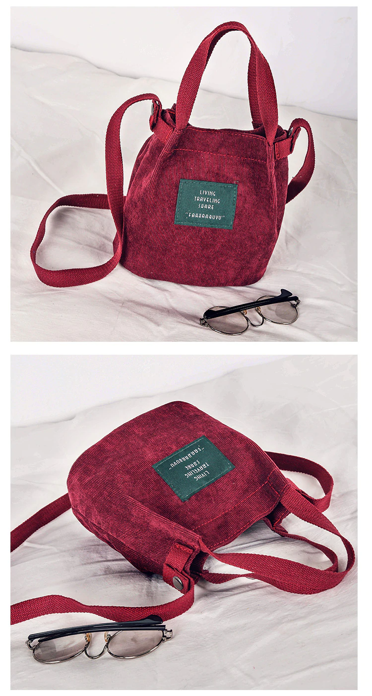 Corduroy purse with handles, detachable shoulder strap and magnet closure. 19x20x12CM big.