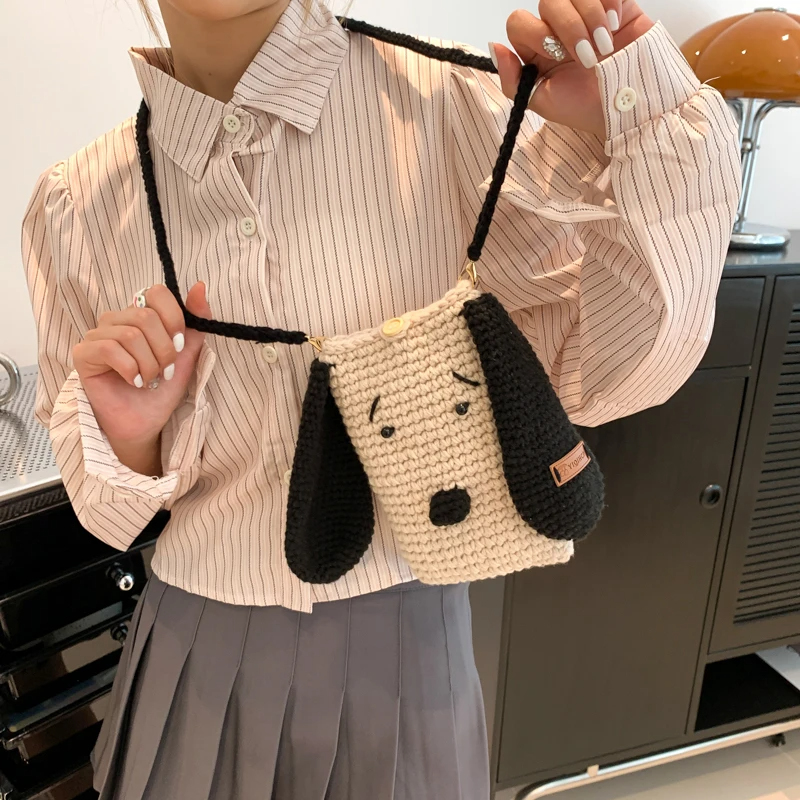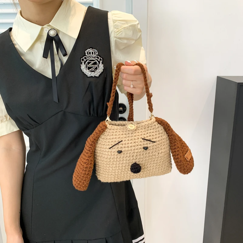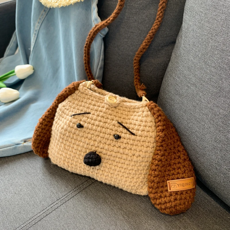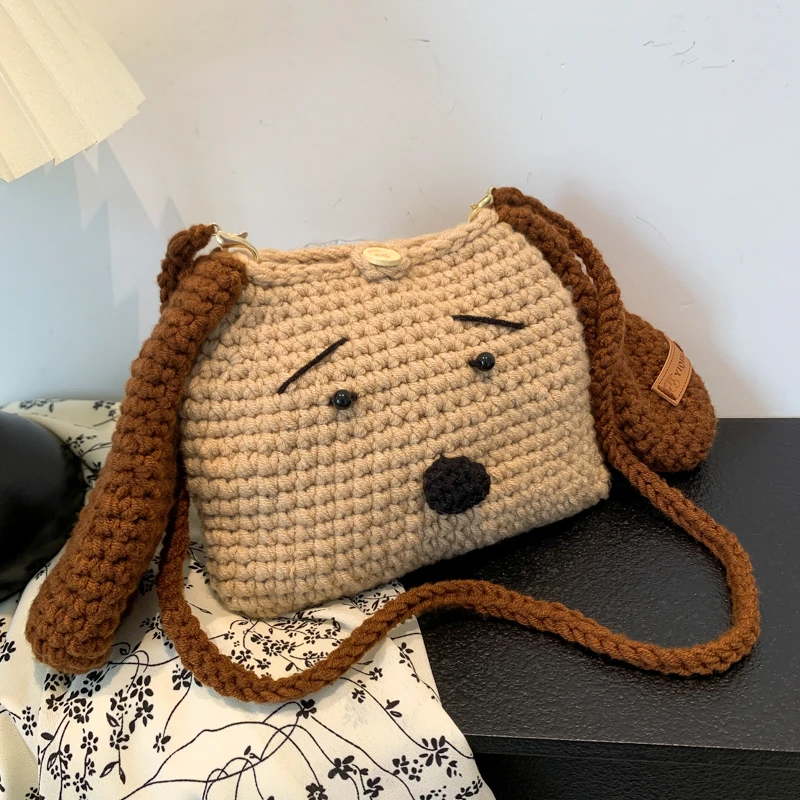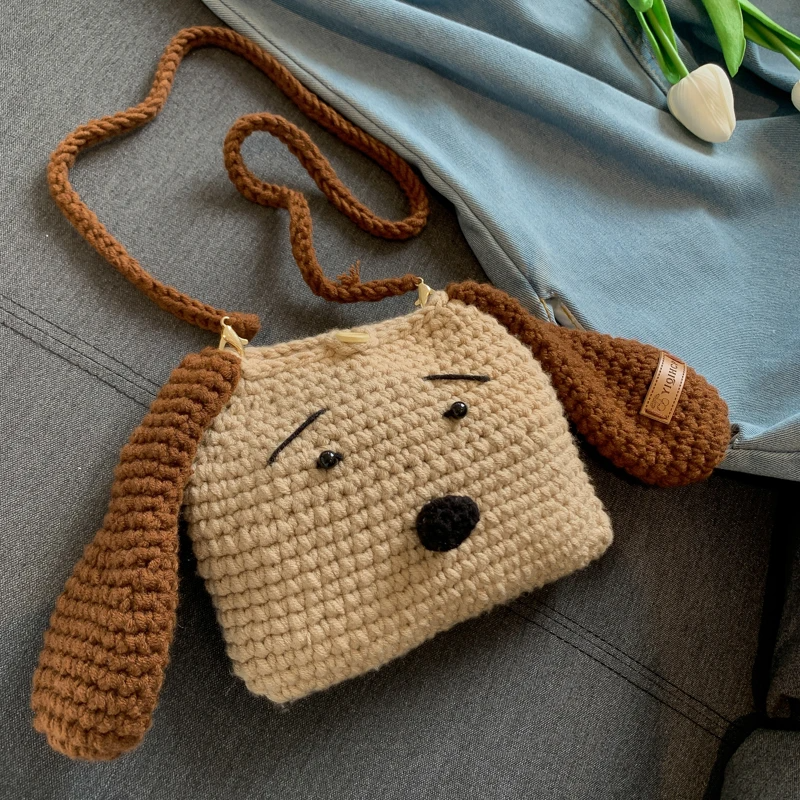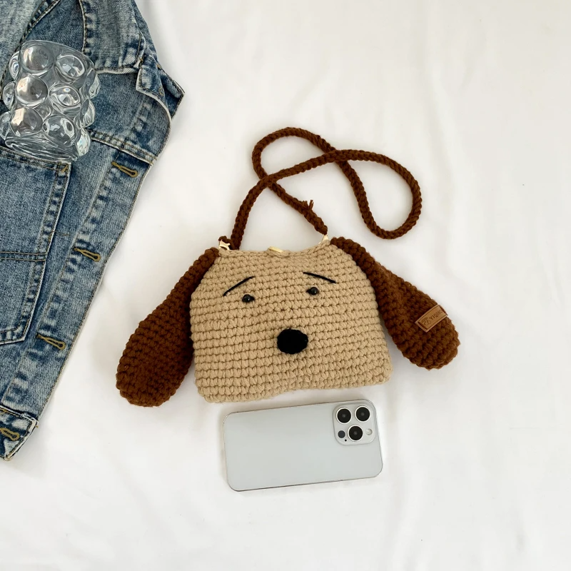 Fall in love with this adorable Crochet Floppy Eared Puppy Purse! Handmade with soft and durable crochet, it's perfect for carrying your essentials on-the-go. The long floppy ears and charming dog face add a unique touch. Available in brown or black, this purse is the perfect accessory for dog lovers.