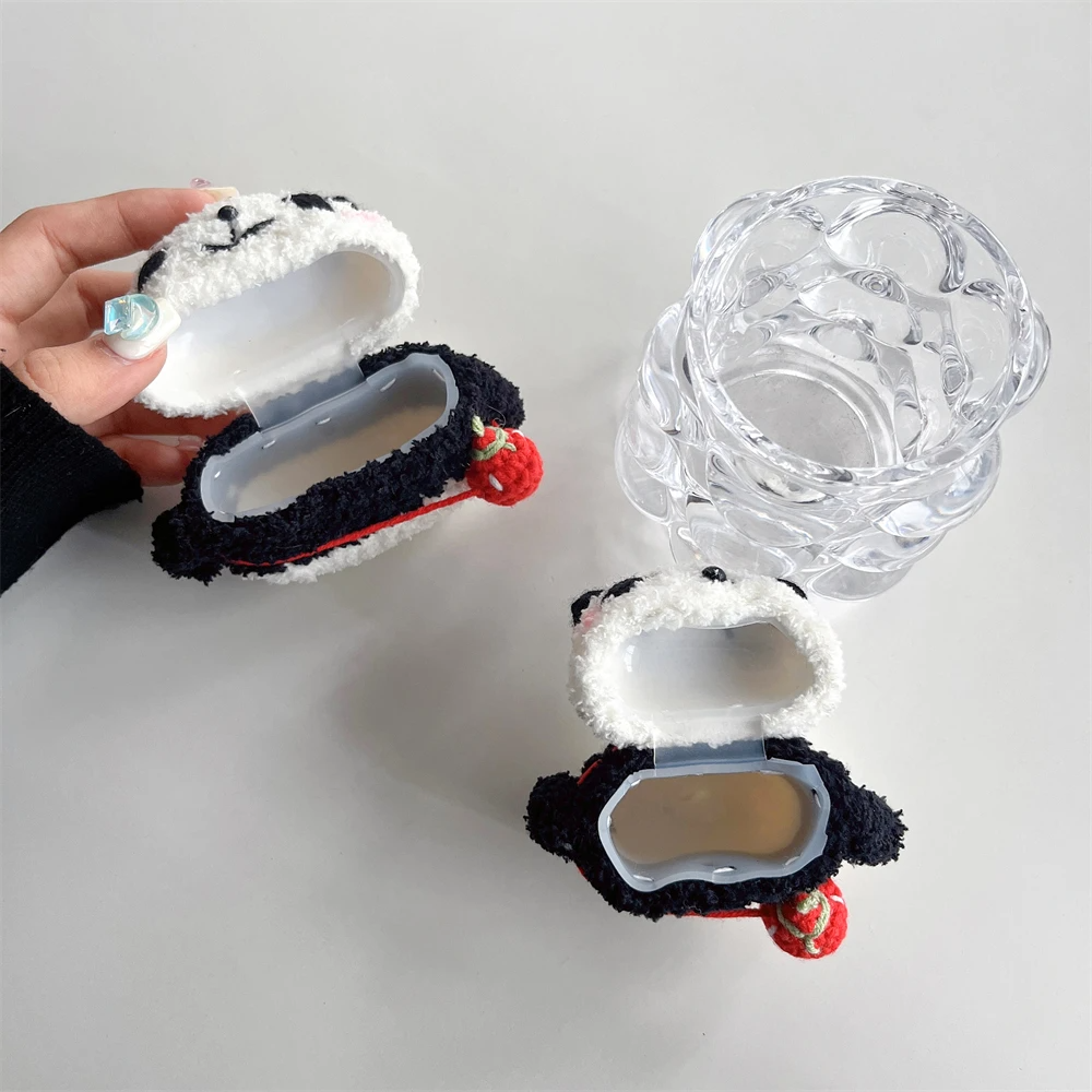Transform your ordinary AirPods case into a cute and cuddly panda bear with this handmade crochet cover! Not only will it protect your AirPods, but it will also add a touch of adorable decoration to your daily life. Plus, the small red bag adds a fun and functional element. Kawaii and oh-so-quirky!