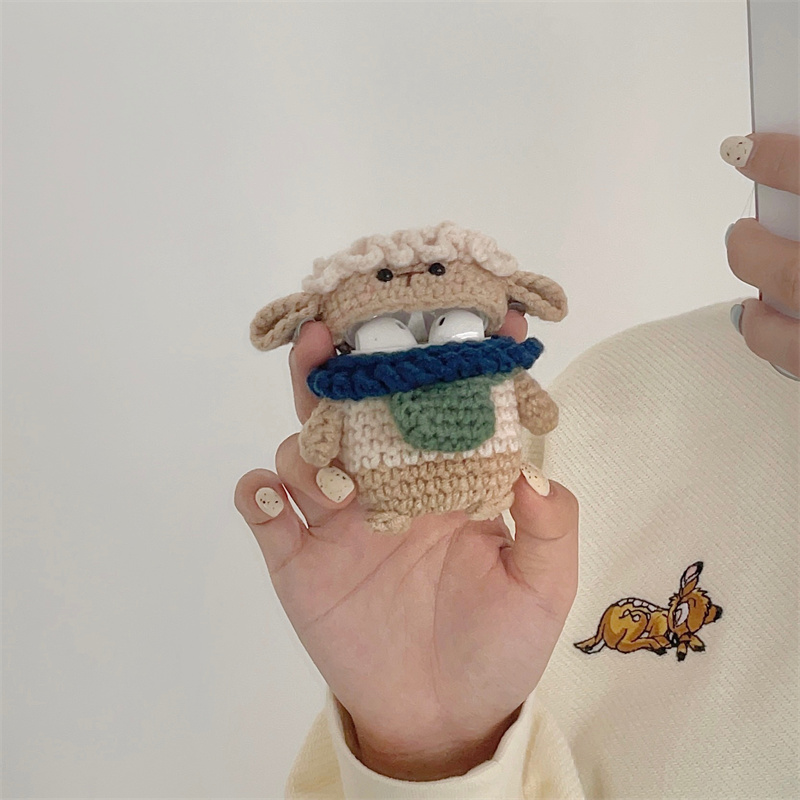 Keep your AirPods protected and adorably charged with our Crochet Sheep Case Cover! This cute cover features a lovable sheep character wearing a blue scarf and green bag. Not only does it add personality to your AirPods, but it also keeps them safe and charging. No need to "shear" your battery life anymore!