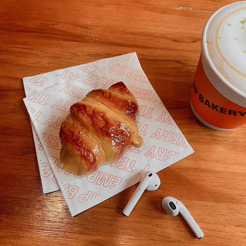 Cute protective cover for Airpod cases (Airpod charger case not included) with clip shaped like a croissant! Will fit Airpods 1/2 and Airpods pro cases.