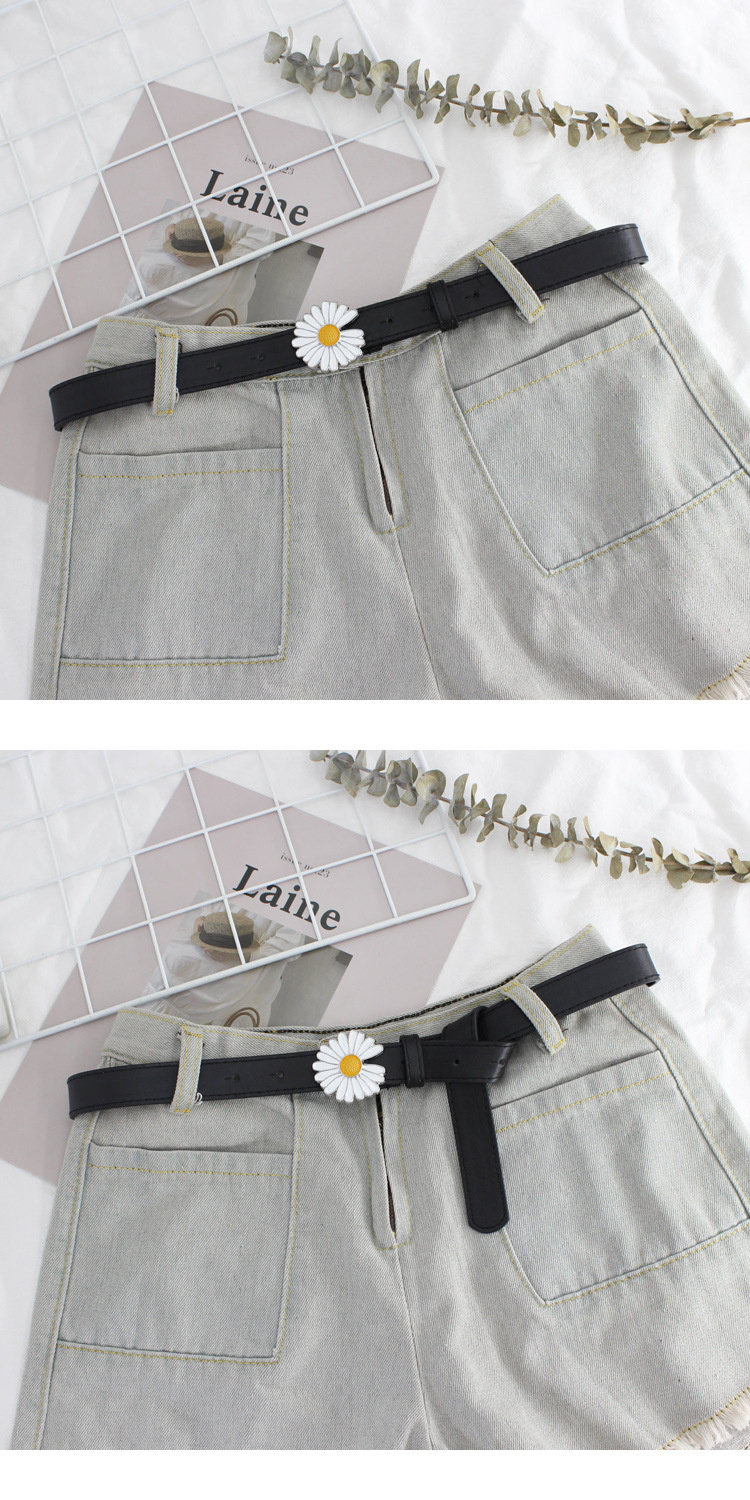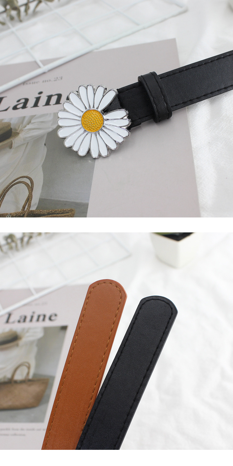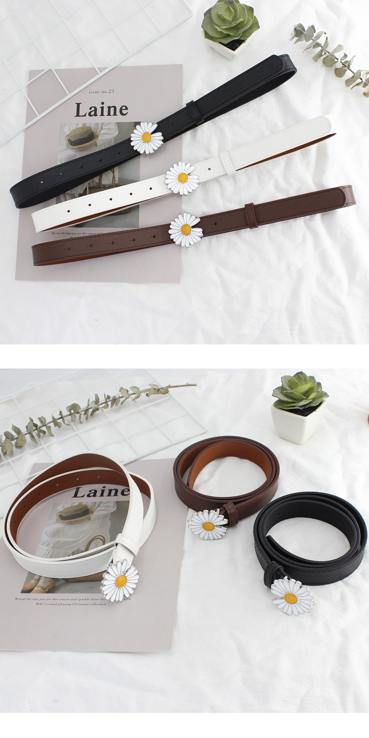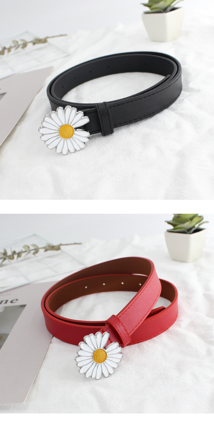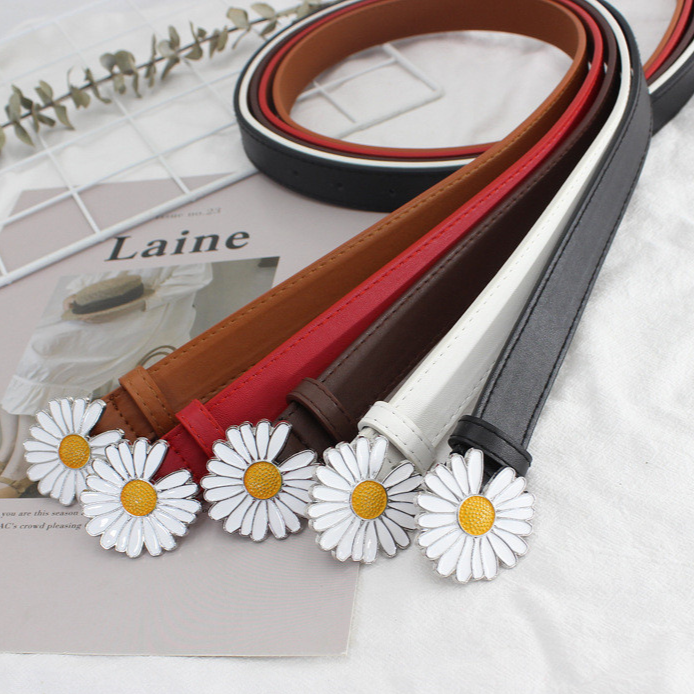 Cute pleather belts with daisy buckle, available in five different colours, 100X2.3cm big.