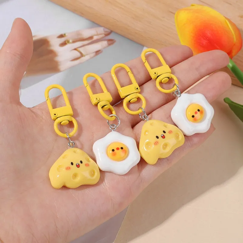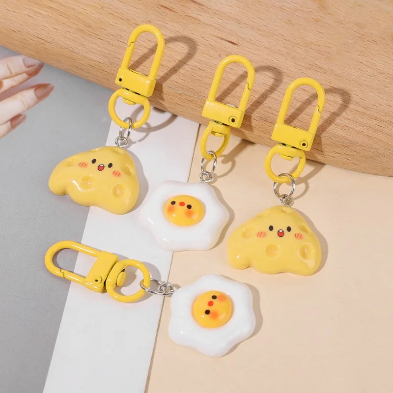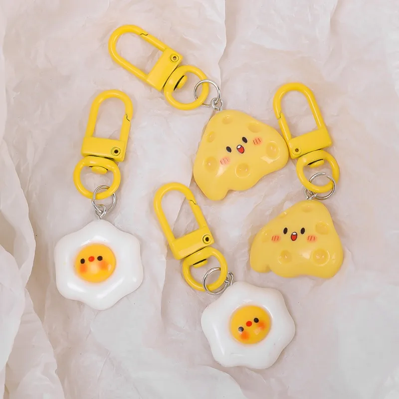 Add some charm to your everyday items with these adorable egg and cheese clip-ons! With a choice of a fried egg or yellow cheese design, these charms are the perfect way to personalize your belongings. Get your favorite or collect them both for a charming set!