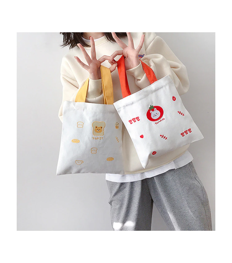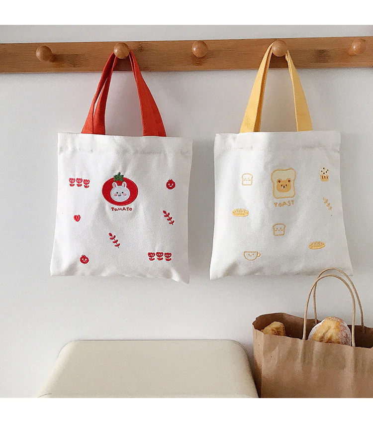 Embroidered Snack Animal Tote Bag (2 Designs)