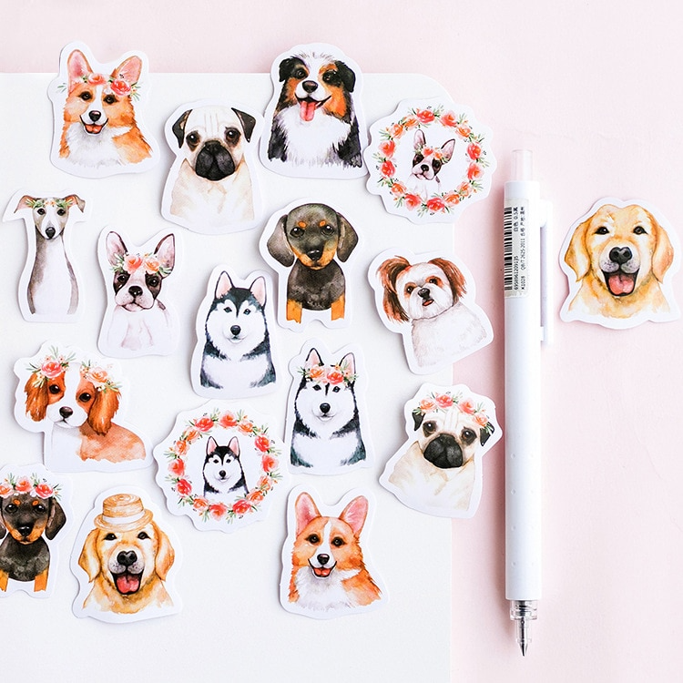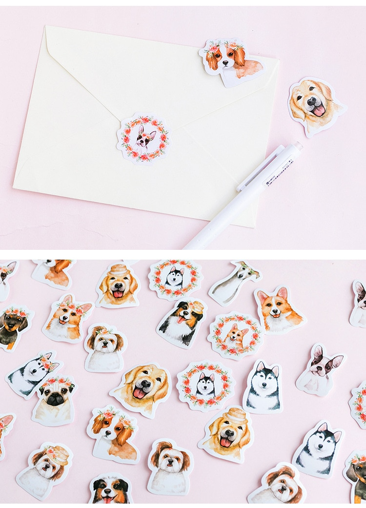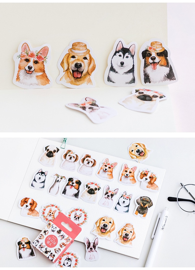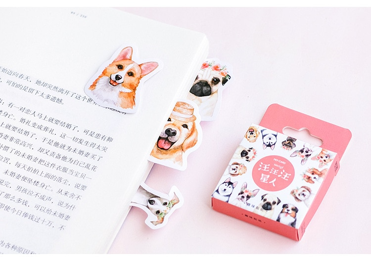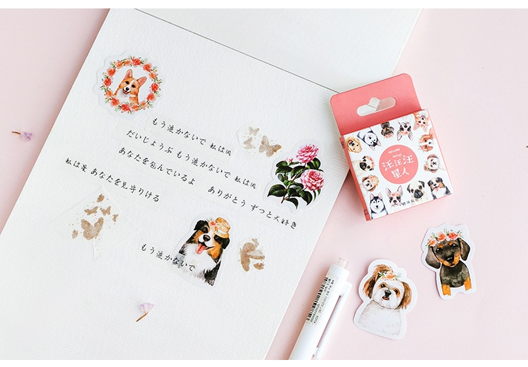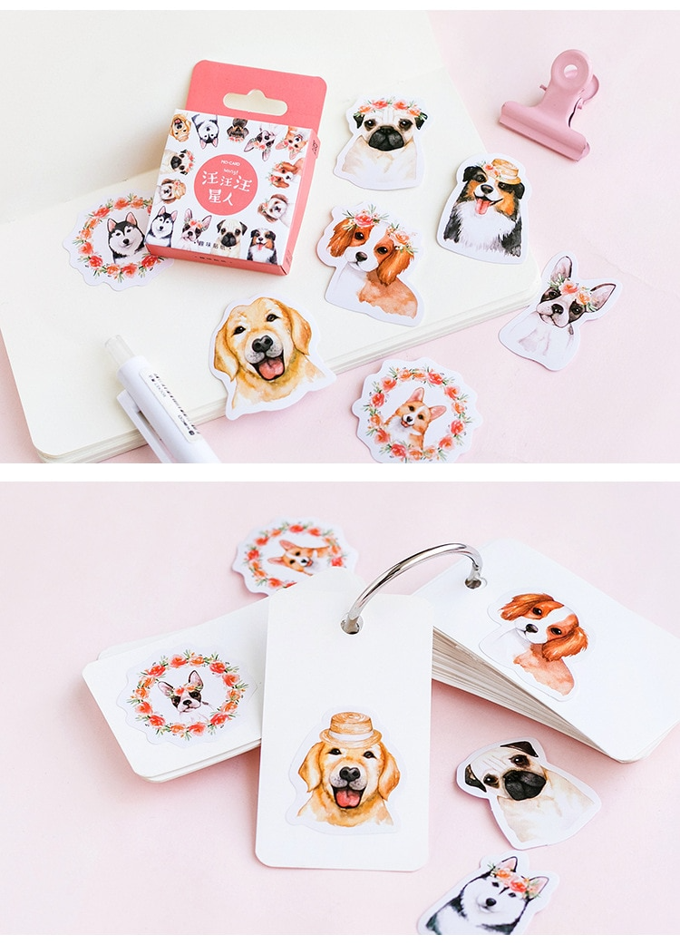 Pack of adorable illustrated dog stickers: 45 stickers total, box is 4.4X4.4X1.1CM big.
