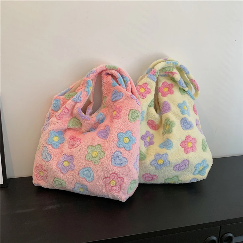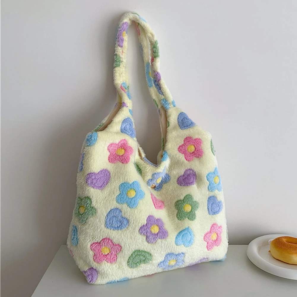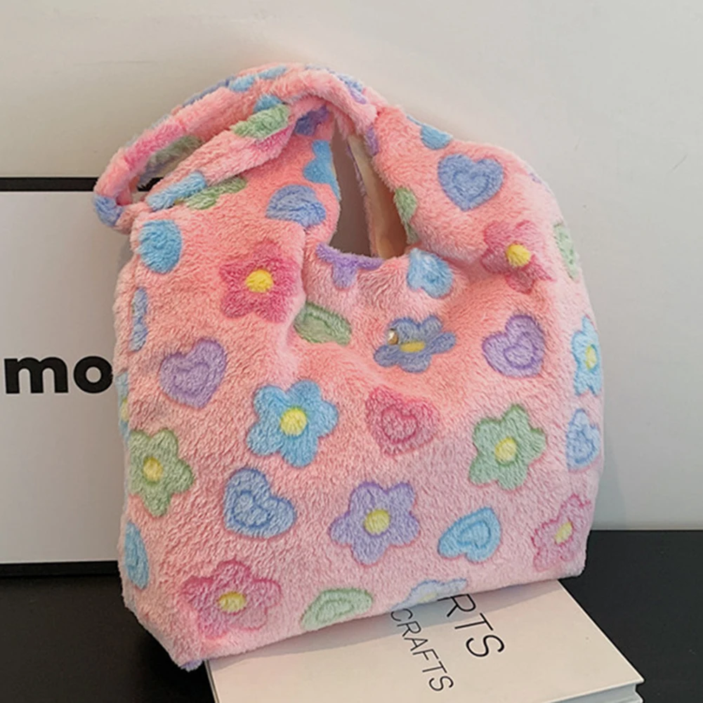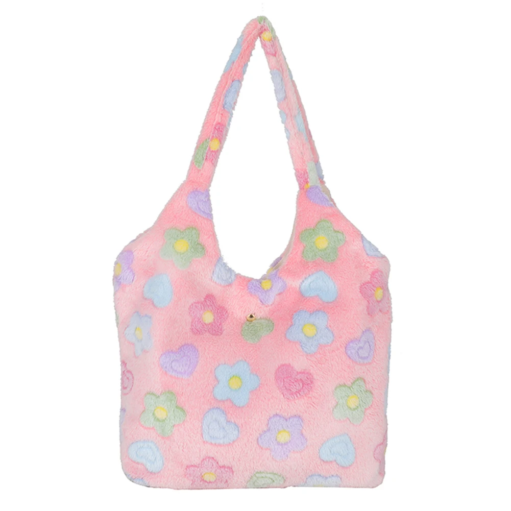 Fluffy y2k Flowers and Hearts Shoulder Bag (3 Designs)