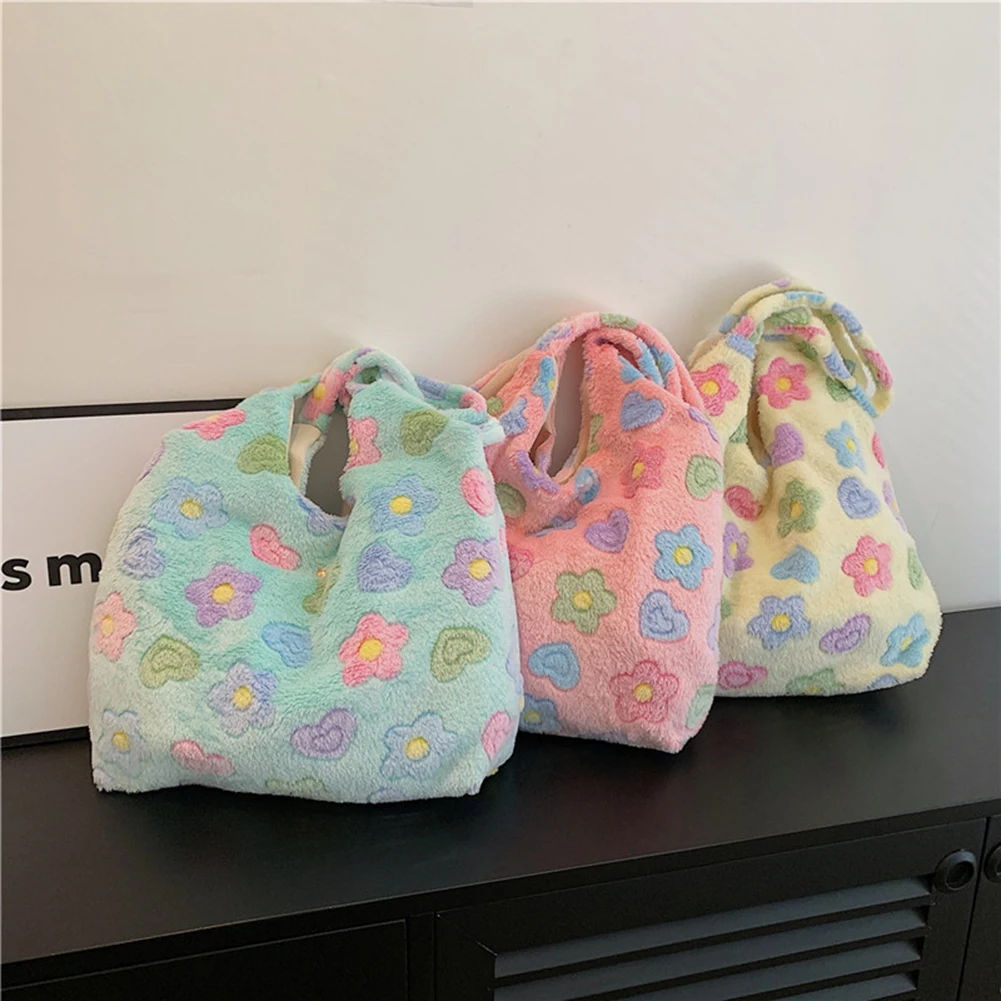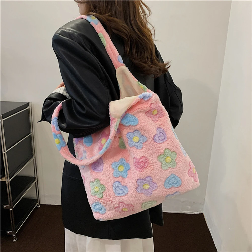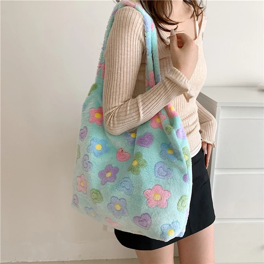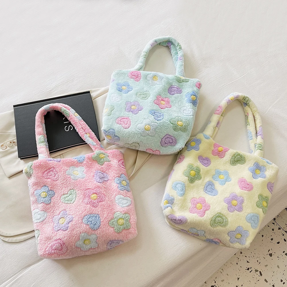 Fluffy y2k Flowers and Hearts Shoulder Bag (3 Designs)
