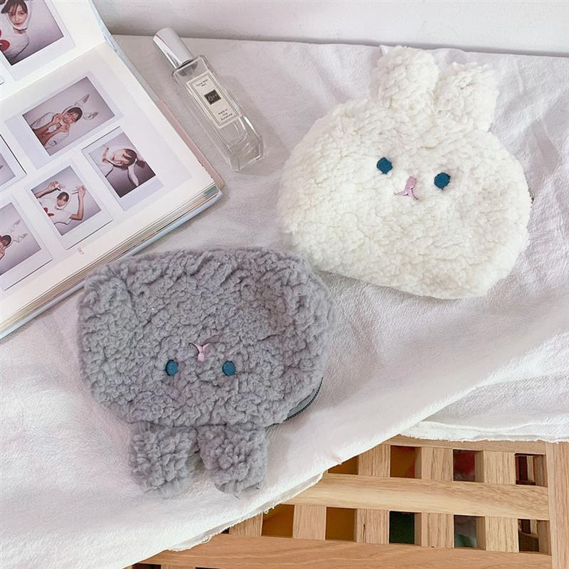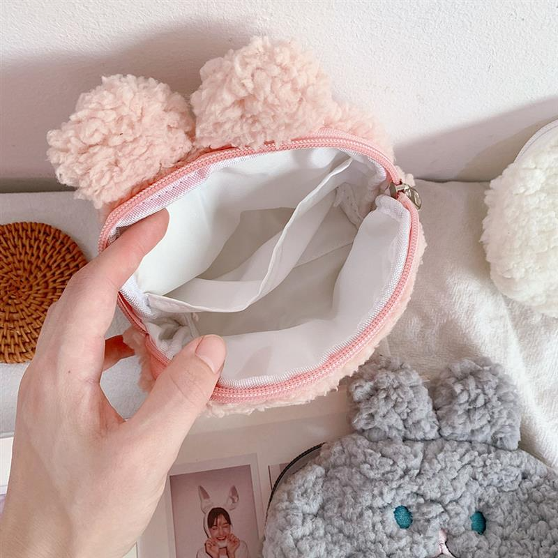 Funny Bunny Teddy Fur Zipper Pouch (3 Colours)