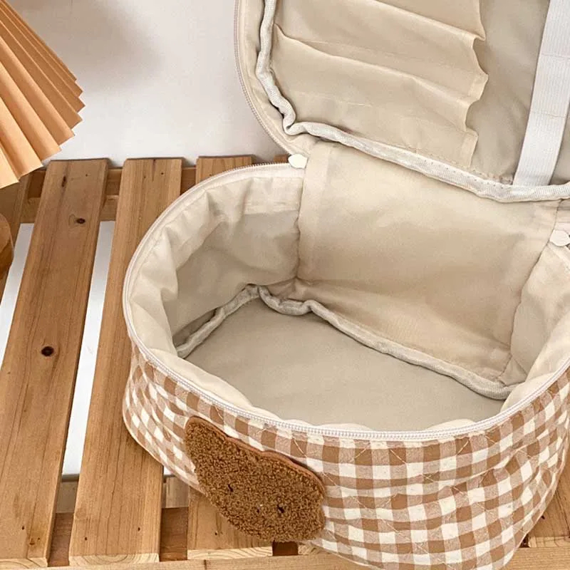 Celebrate your love for teddy bears with this adorable Gingham Teddy Bear Face Zipper Pouch! Featuring a charming brown and white gingham pattern, each pouch is decorated with a soft, fuzzy teddy bear face that adds a touch of whimsy to your daily essentials. Available in two convenient sizes, you can pick the perfect pouch for coins, makeup, or small treasures, or grab the set of both at a special discount. Whether for yourself or as a delightful gift, these pouches bring playful charm and practical storage wherever you go.