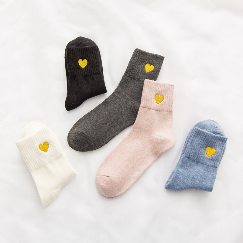 Golden Heart Embroidery Crew Socks (5 Colours)