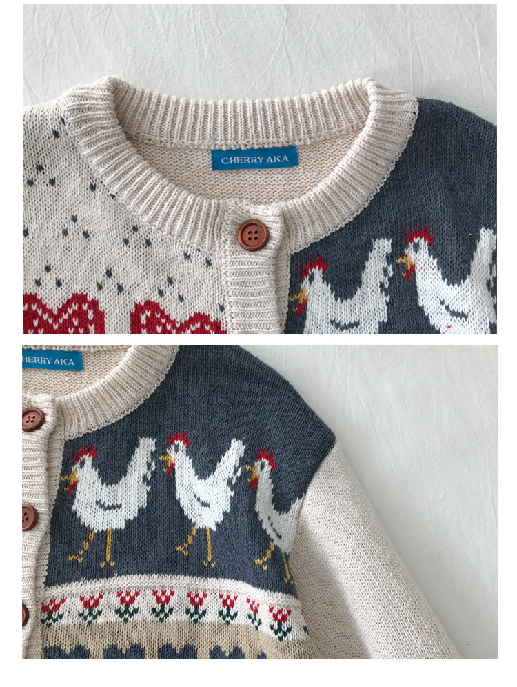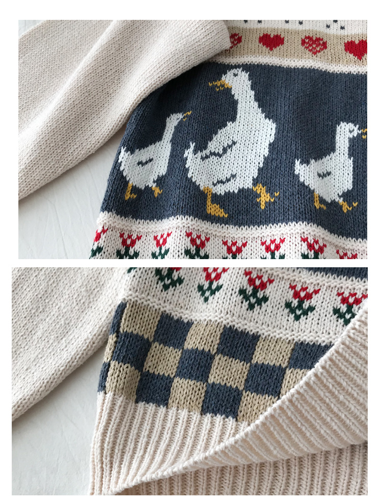 The ultimate button-up cottagecore cardigan featuring chickens, apples, ducks and flowers!
