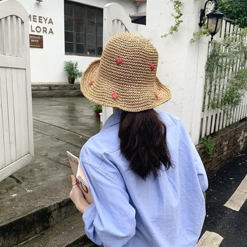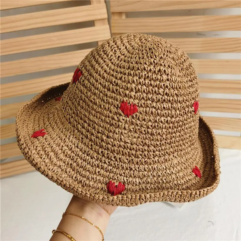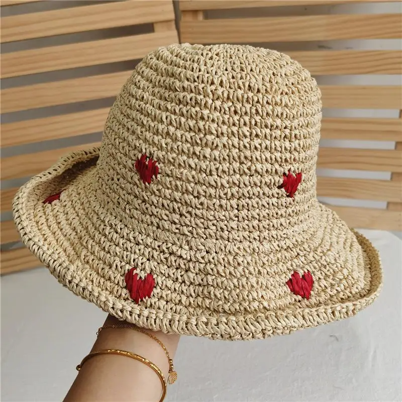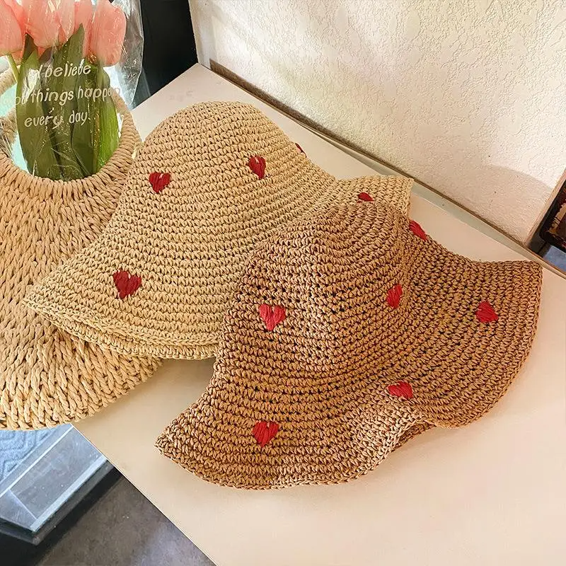 Heart Embroidery Crochet Beach Hat (2 Colours)