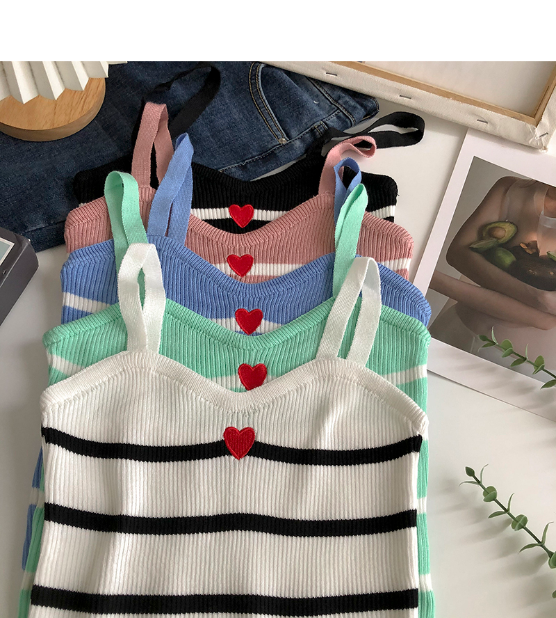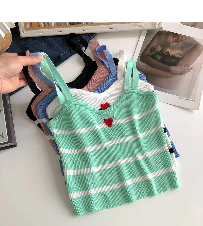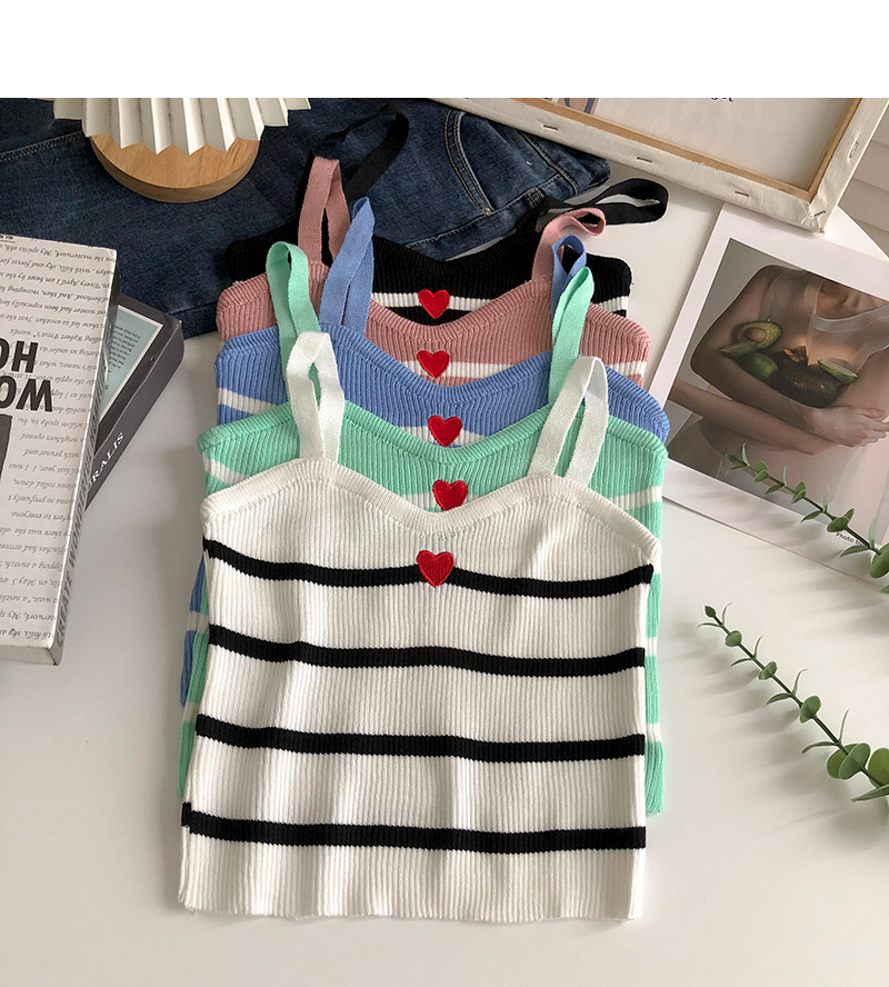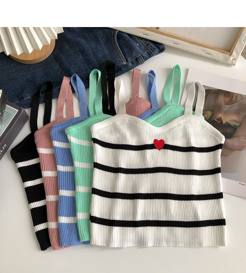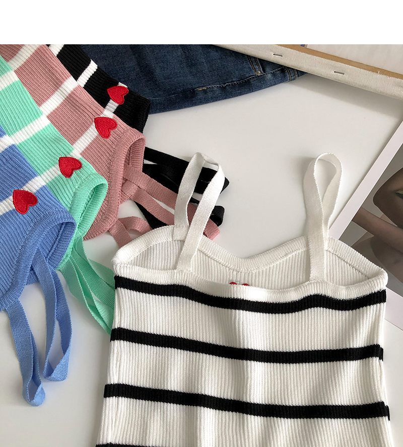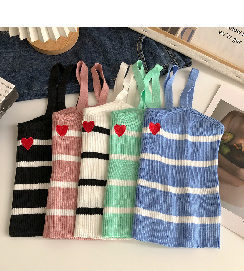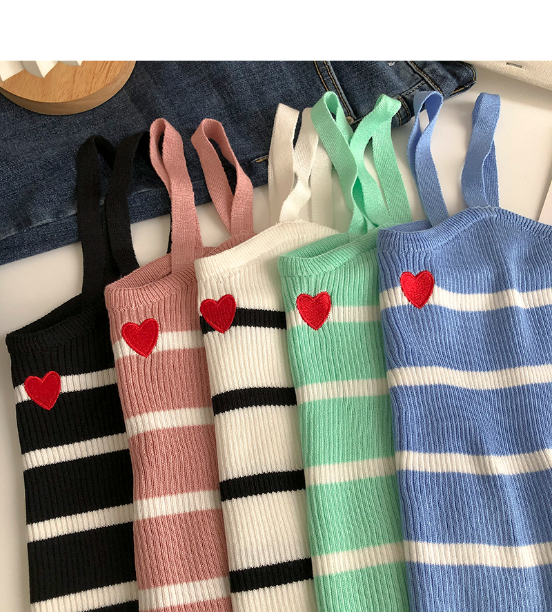 Heart Embroidery Stripe Knit Spaghetti Strap Top (5 Colours)