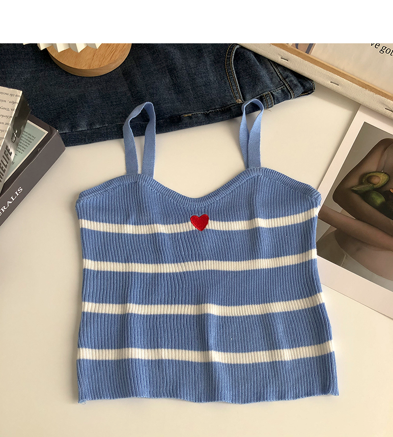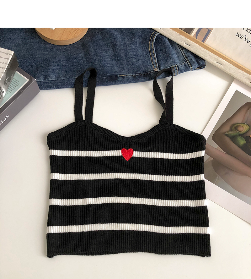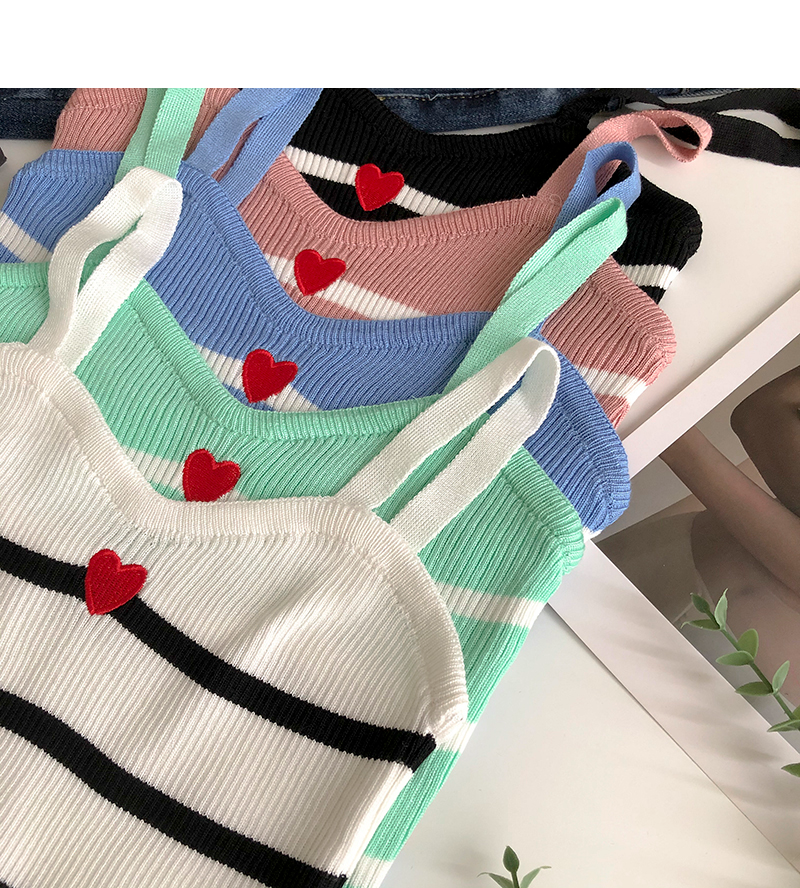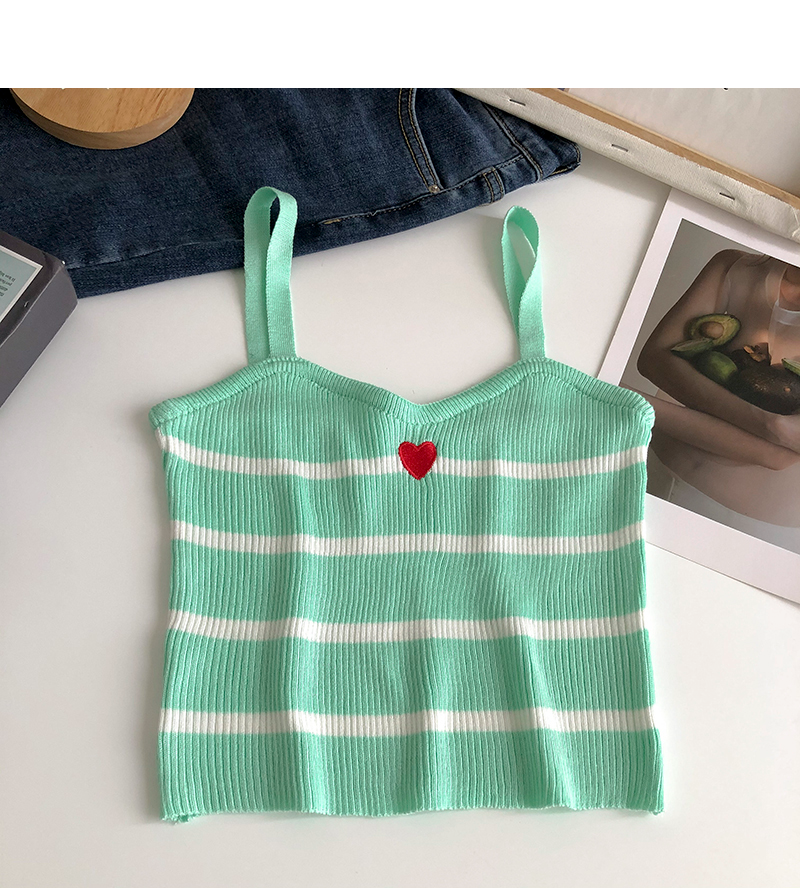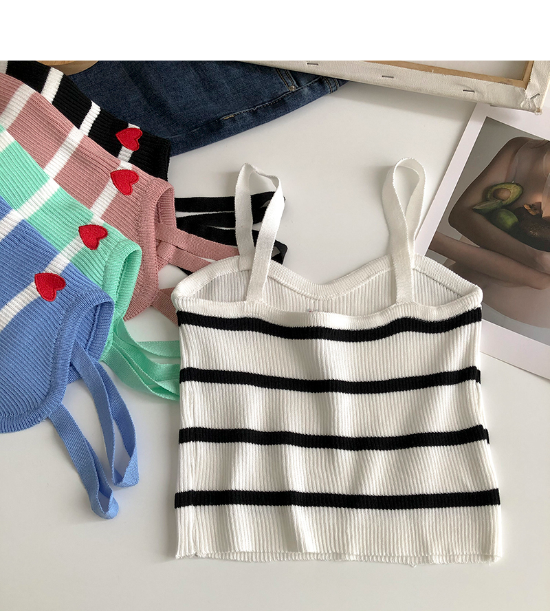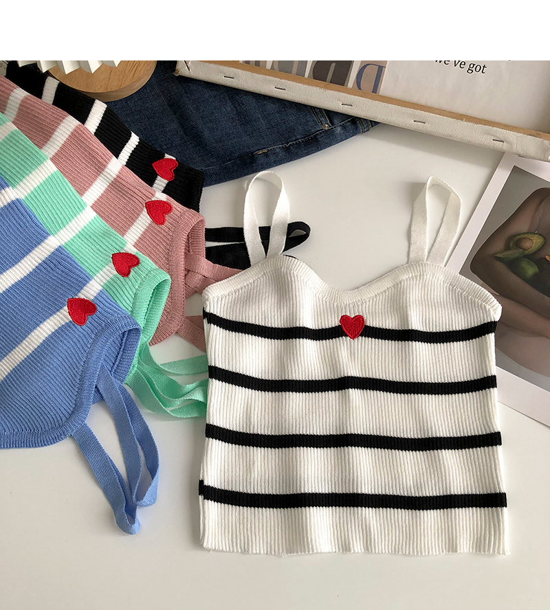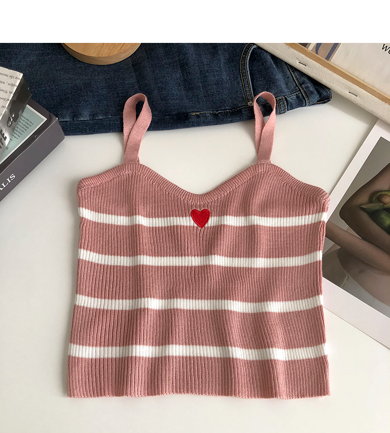 Heart Embroidery Stripe Knit Spaghetti Strap Top (5 Colours)
