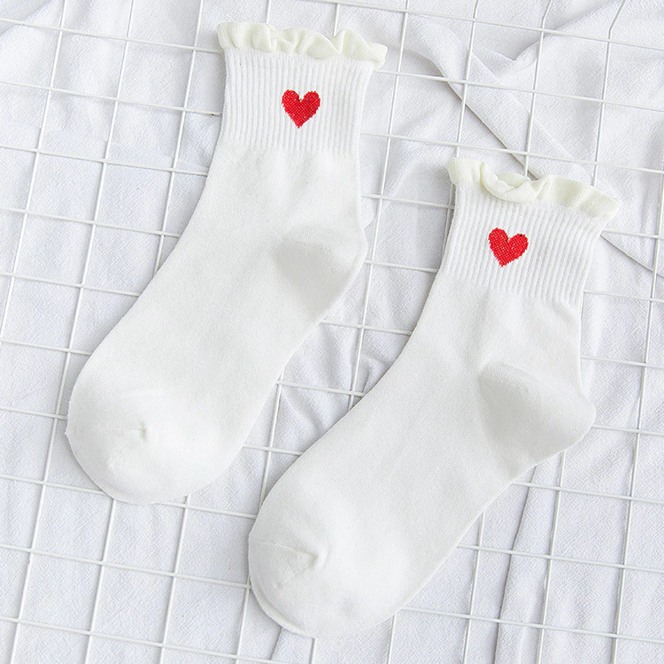 Heart Ruffle Crew Socks (6 Colours)