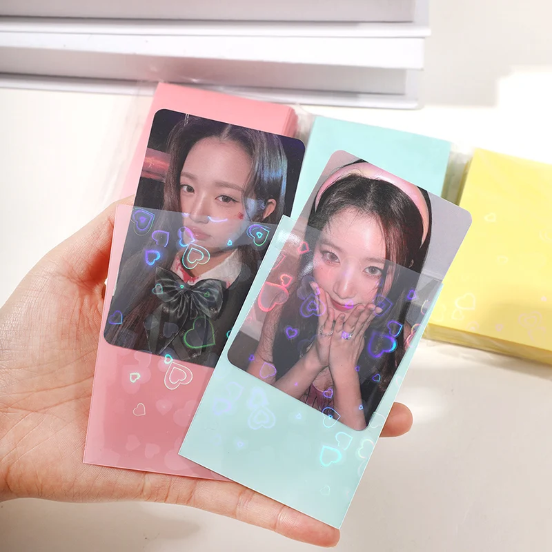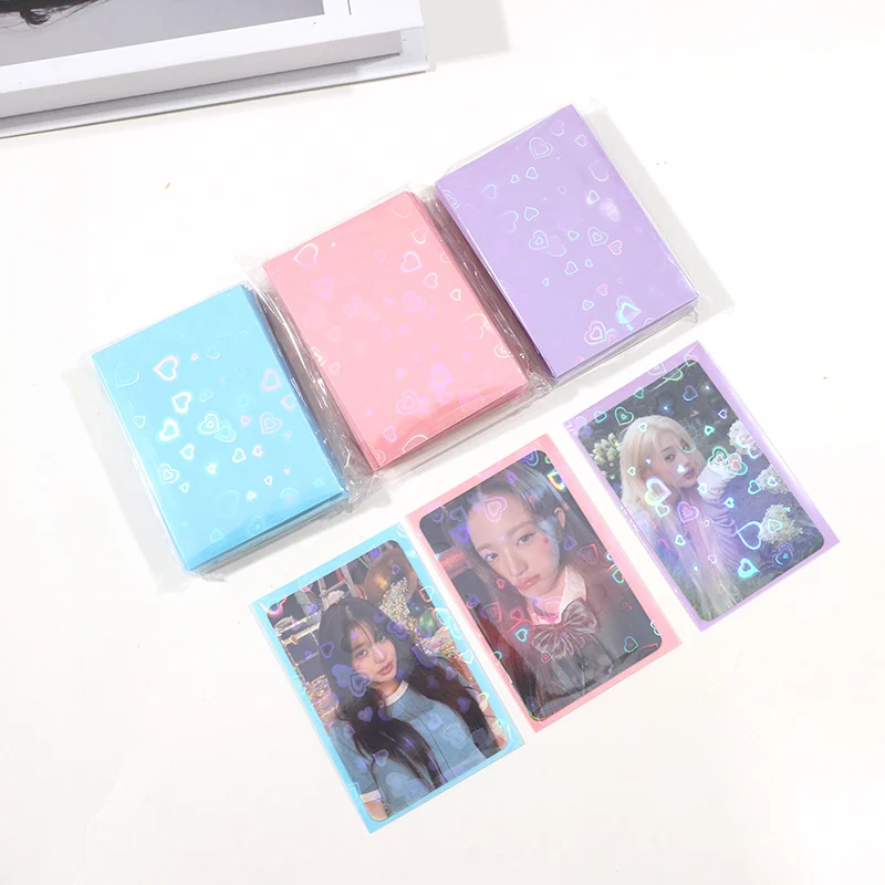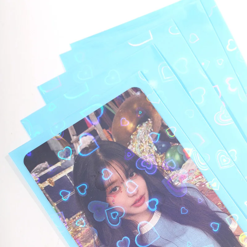 Take your K-pop love to a whole new level with our Holographic Heart Photo Card Sleeves! These sleeves feature a unique holographic heart design and come in a set of 50, with 7 vibrant colour options to choose from. Decorate and keep your precious K-pop idol pcs safe and stylish with these sleeves.