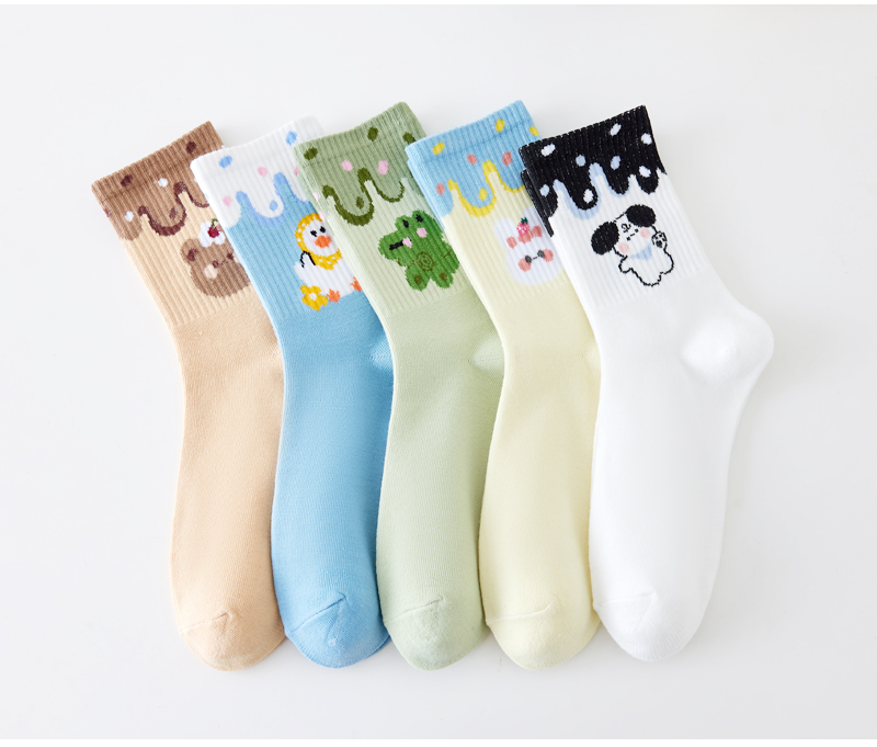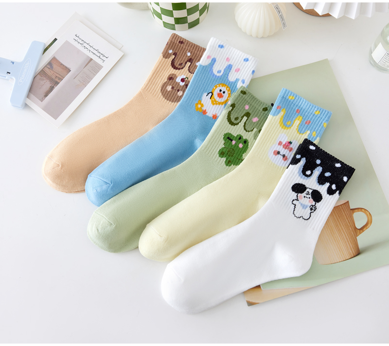Welcome to Ice Cream Animals Ankle Socks, the coziest things since well, melted ice cream! These ultra-cute ribbed ankle socks are jam-packed with five unique designs featuring animal-themed illustrations and drippy ice cream with sprinkles detailing on the ankles. They're sure to make a splash, no matter what kind of beat you march to!