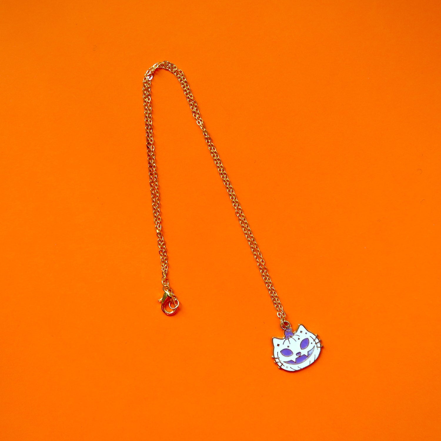 White Jack-O-Lantern Cat Pumpkin Charm Necklace