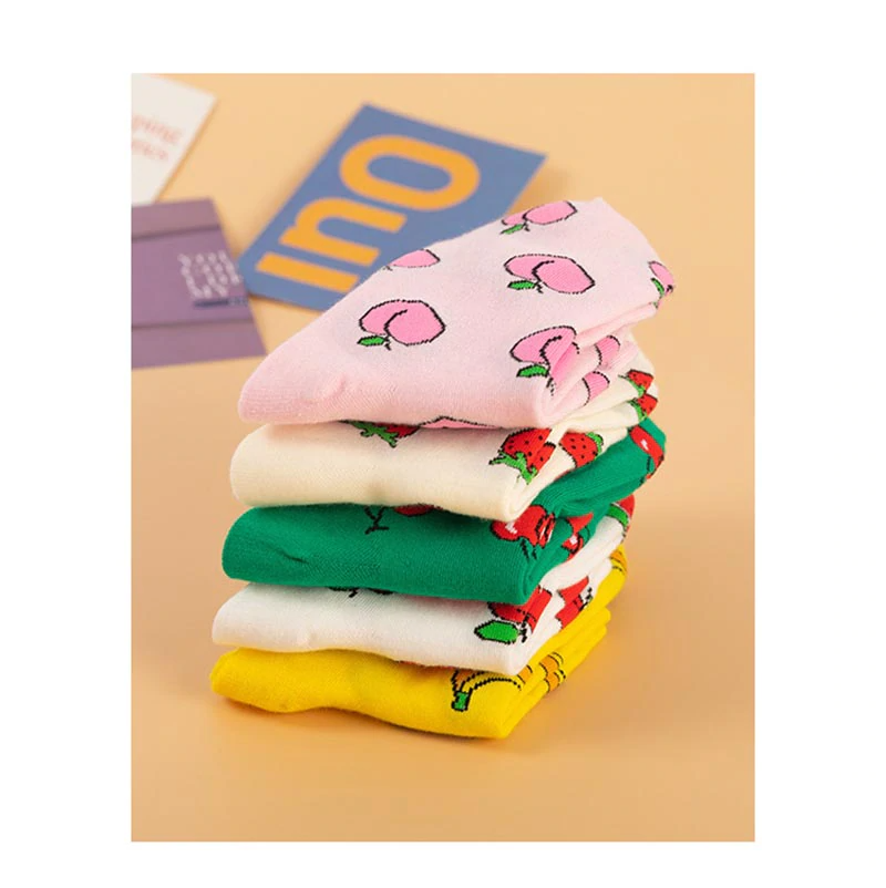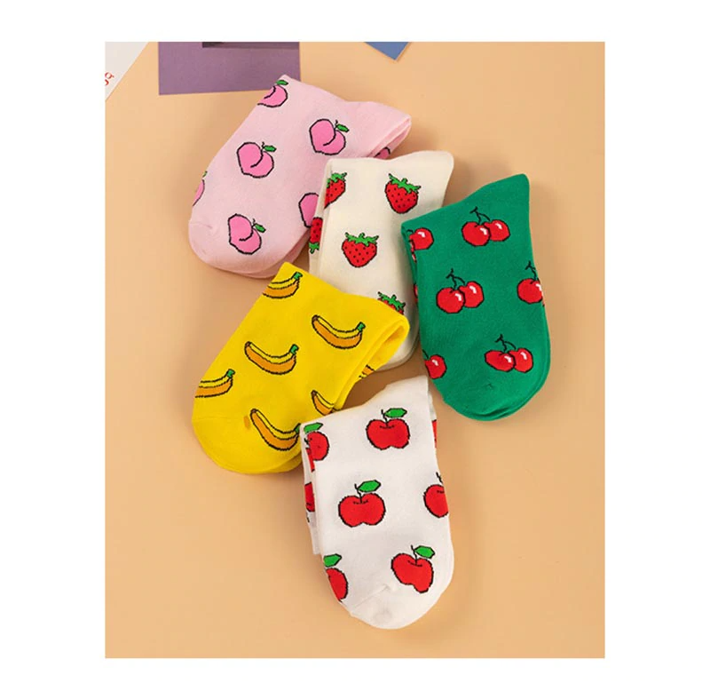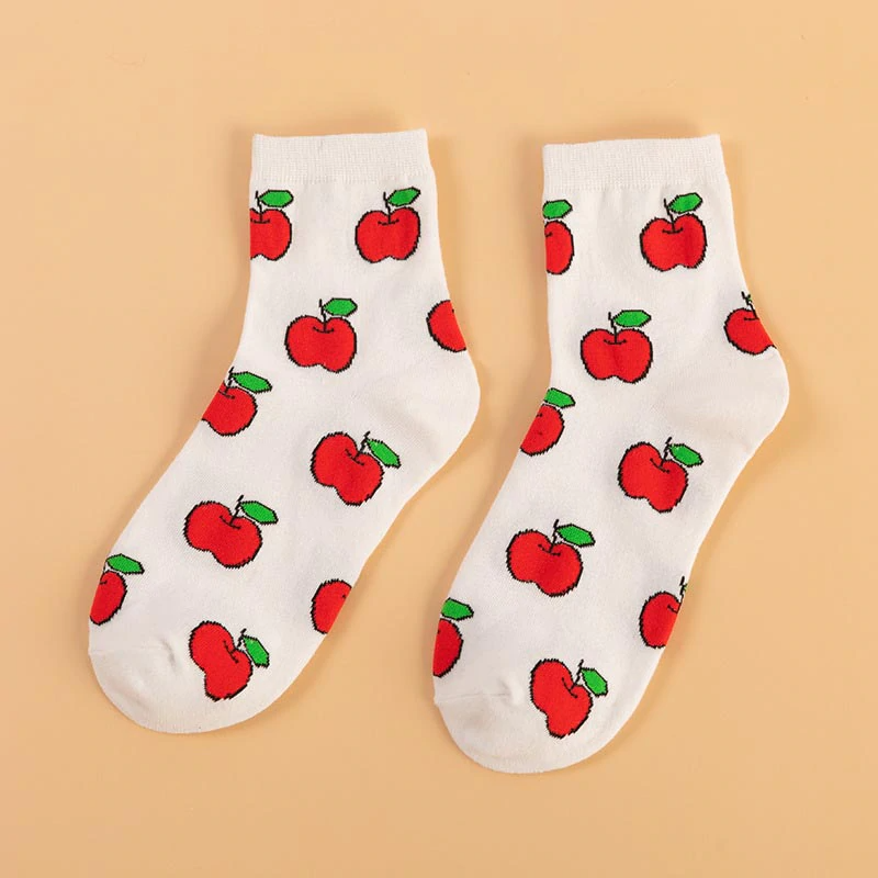 Socks with allover fruit pattern! Available in five different colours, will fit up to a size EU39.