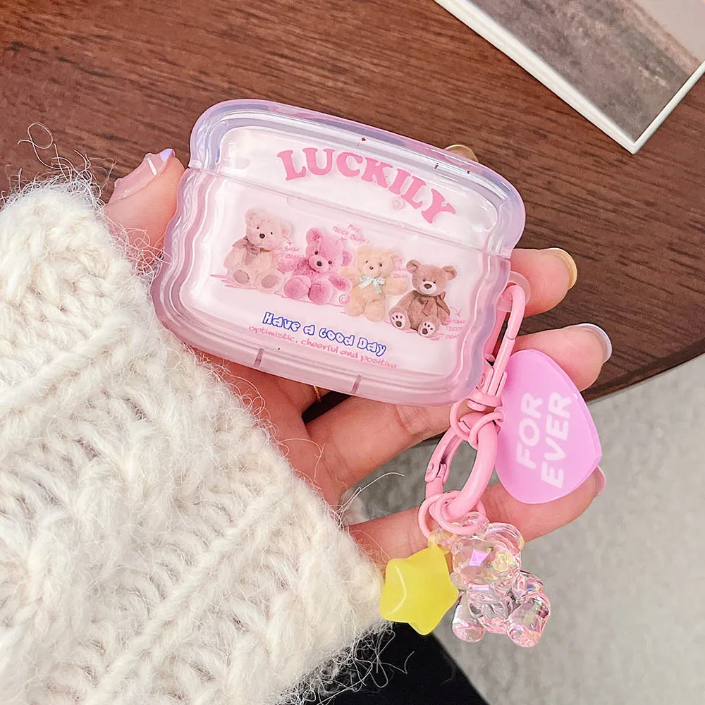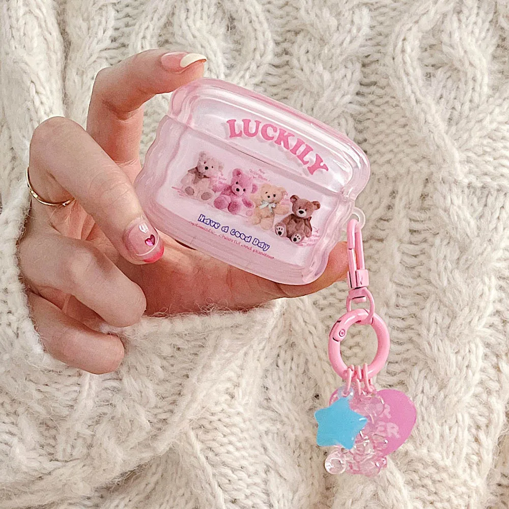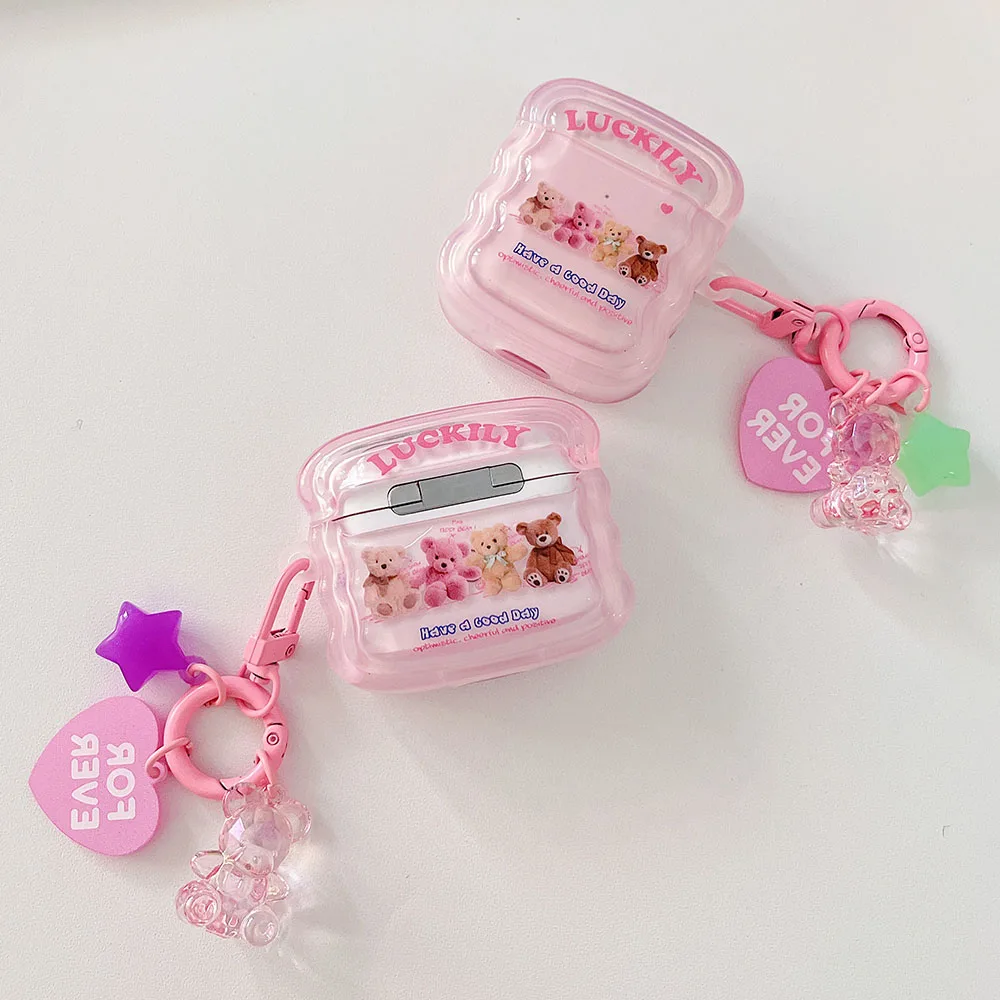 This one-of-a-kind Lucky Teddy Bear AirPods Charger Case Cover adds a playful splash of colour and charm to your AirPods charger! Adorned with a funky wavy border, vibrant "Luckily" lettering, and an eye-catching teddy bear photocollage, it keeps your charger safe and stylish. Plus, it comes with an attached charm clip - adding a sweet and twinkly finishing touch!