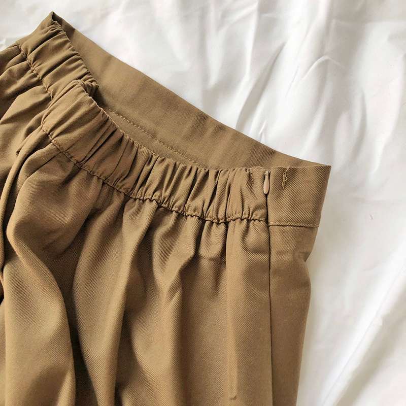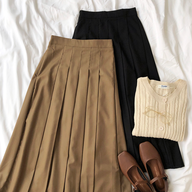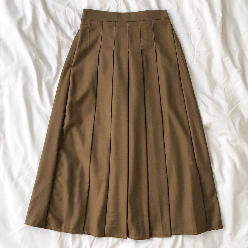 Vintage style pleated midi/maxi skirt with elastic waist and zipper closure, available in and brown.