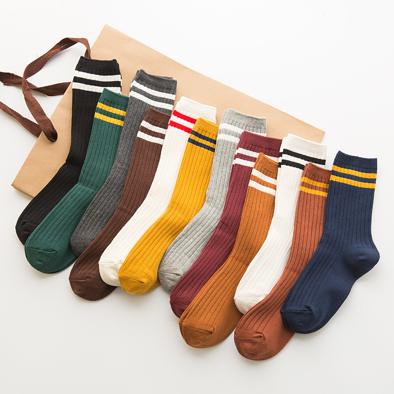 Multicolour Vintage Style Stripe Crew Socks (12 Colours)