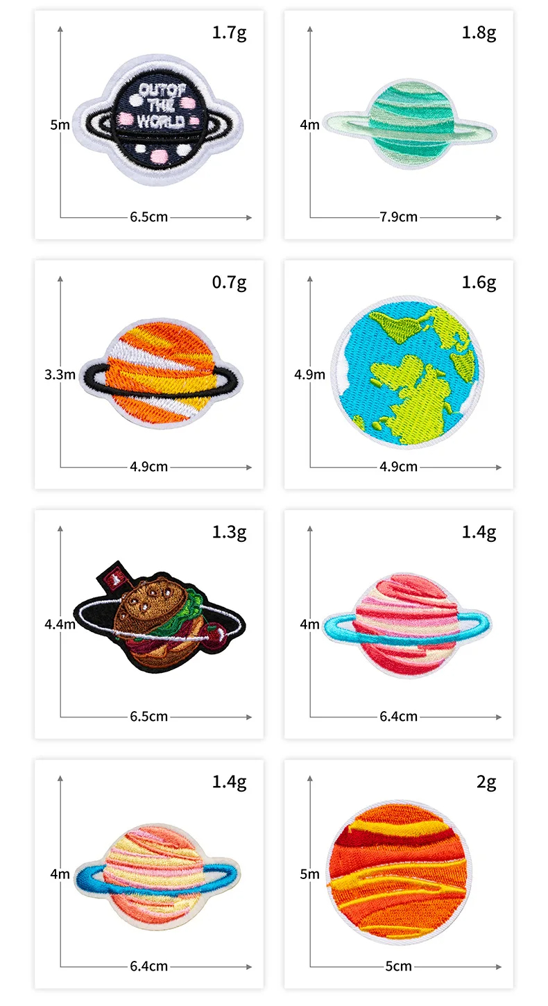 Embark on a cosmic adventure with these embroidered iron-on patches! Turn your clothes into a universe of fun by picking from 20 exciting designs or snag the entire set at a special price. Not only do these patches celebrate your passion for outer space, but they also cleverly cover up any fabric oopsies. So, give your wardrobe a stellar upgrade and journey through the galaxy, one patch at a time!